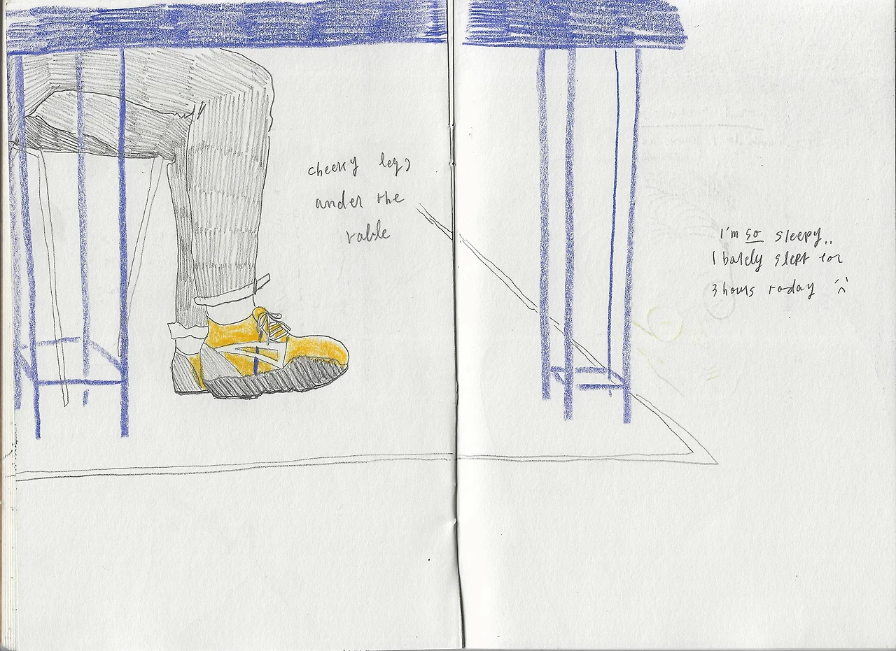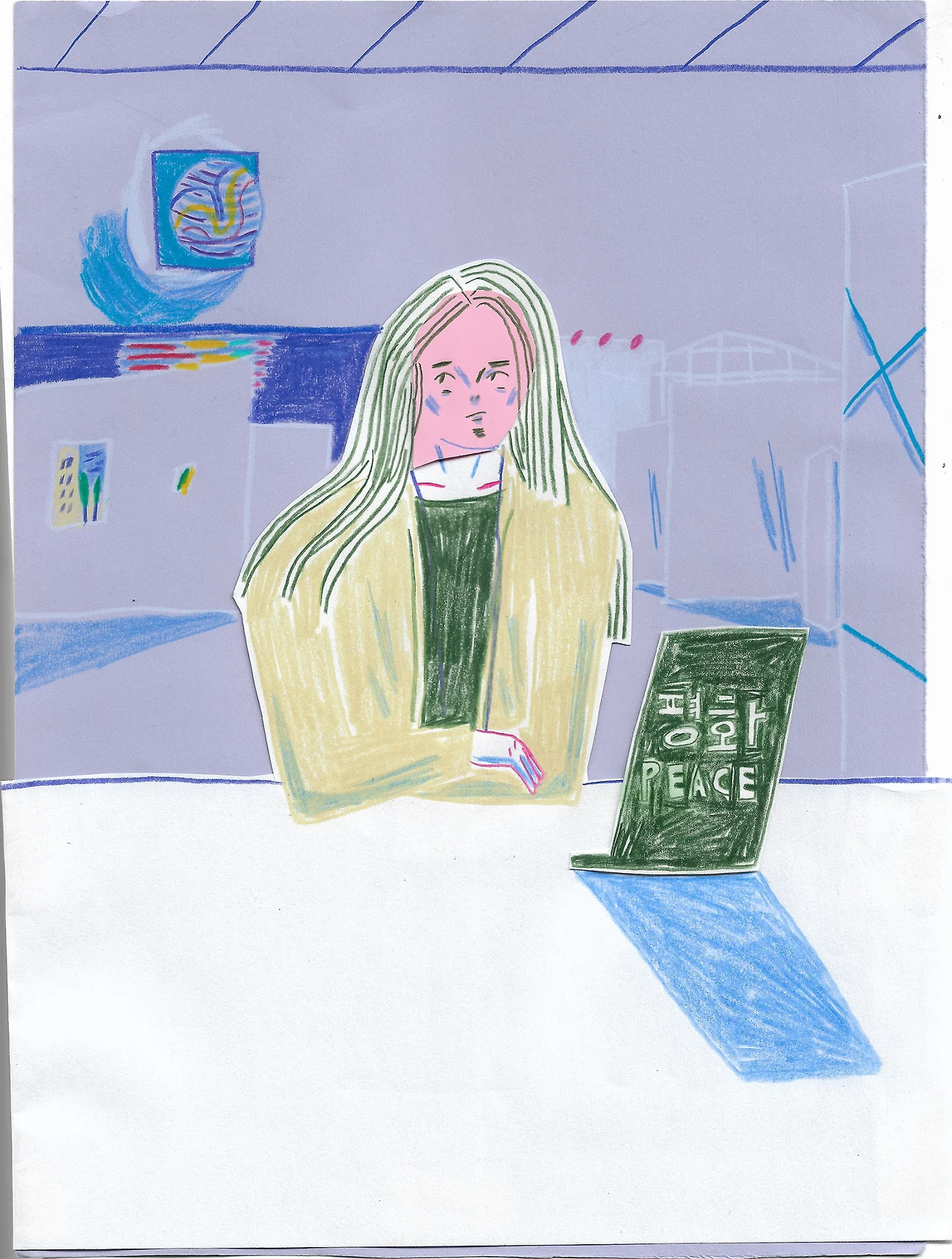 진행하고 있는 프로젝트 <수요일의 그림들>을 위해 그렸던 몇 장. 이게 벌써 1년 전이다. 한국에 갓 돌아와 일산 킨텍스에서 하는 디자인 페스티벌이라는 페어에 참여를 하고 있던 중이었다. 내가 예상한 관객은 서일페 정도의 규모였는데, 실상은 관람객보다 참여자가 더 많았던 행사였다. 뭐, 덕분에 옆에 앉은 다른 작가님들을 사귀기엔 최고의 기회였다. 이 날은 <수요일의 그림들> 5주 차였고, 딱히 주어진 테마 없이 친구와 내가 그리고 싶은 아무거나 그리는 것이 나름의 주제였다. 오랜만에 로케이션 드로잉이나 해야지~ 하고 항상 챙기는 색연필과 색지 몇 장을 바리바리 싸갔다.