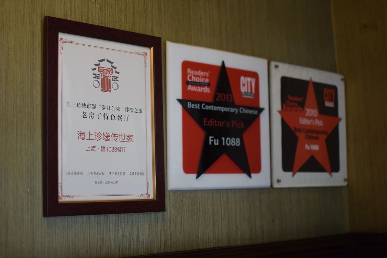 Fu 음식점은 여러 곳이 있는데 이 1088이 가장 먼저 생겼고, 1039, 1015가 차례로 생겼다. 이들 음식점들마다 특징은 약간씩 다르다고... 예약하지 않으면 갈 수 없는 곳이다. 그리고 생각보다 많이 찾기 힘들었다. 애시당초 이 건물은 프랑스 조계지 구역에 있던 주거용 건물이었고, 이 주거용 프랑스식 건물을 보수 후에 개조하여 만든 곳이기 때문이었다.