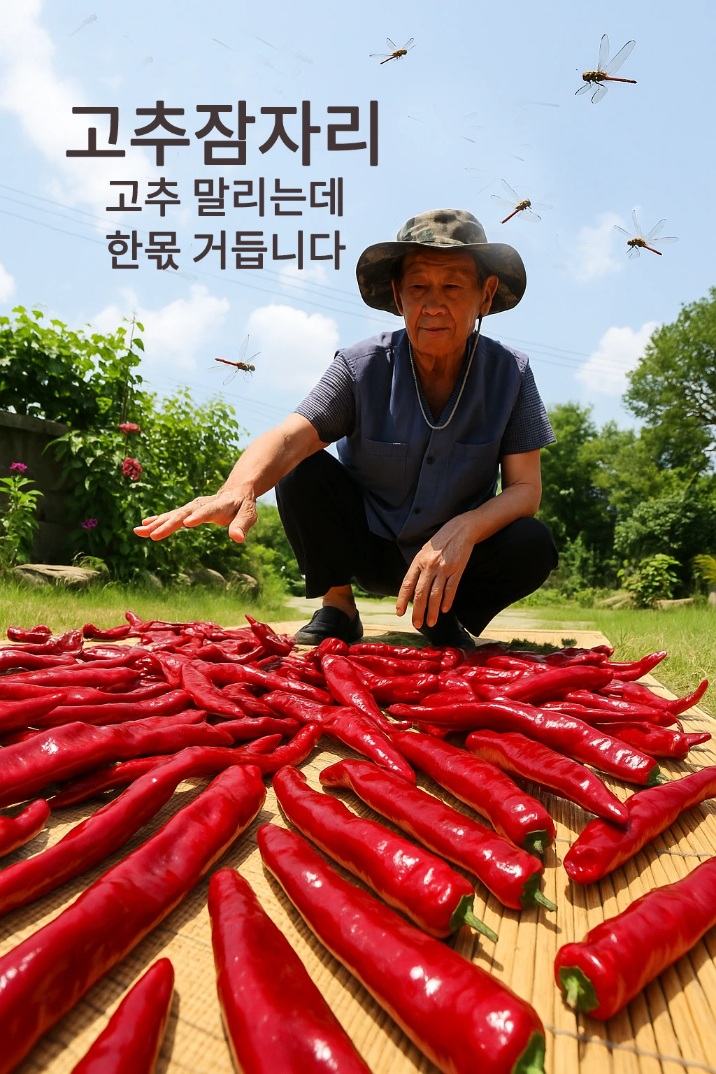 둥글둥글 초가지붕 위에는 하얀 박이 달려 있고, 울타리에는 조롱조롱 수세미가 매달려 있어 정 겹고, 마당 한쪽 멍석 위에서는 빨갛게 익은 고추가 바싹바싹 마르고, 그 위로는 고추잠자리가 쌩쌩 날아다니며 푸른 하늘을 가를 겁니다