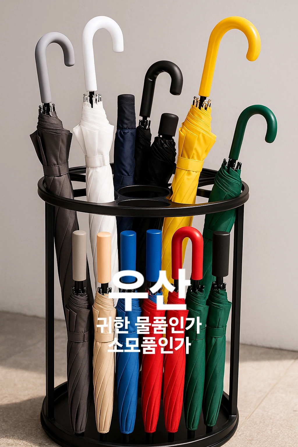 알록달록한 장우산, 접이식 우산, 판촉물로 받은 로고 박힌 3단 우산, 골프 치는 친구가 준 큼지막한 우산, 그리고 어제 산 비닐우산까지.