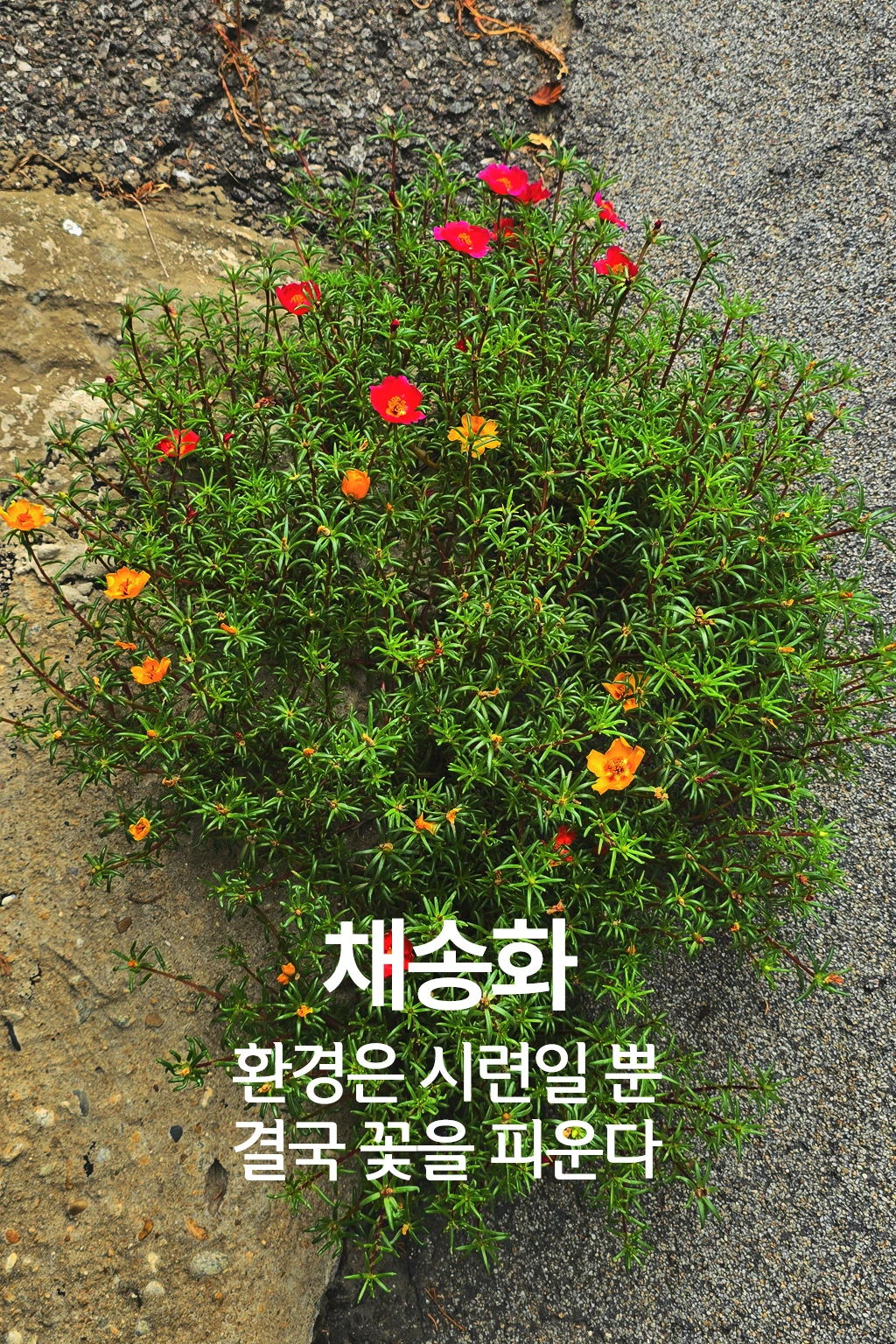 출근길, 경사진 도로 갈라진 틈새에서 살아가는 가녀린 채송화를 마주하곤 했습니다.