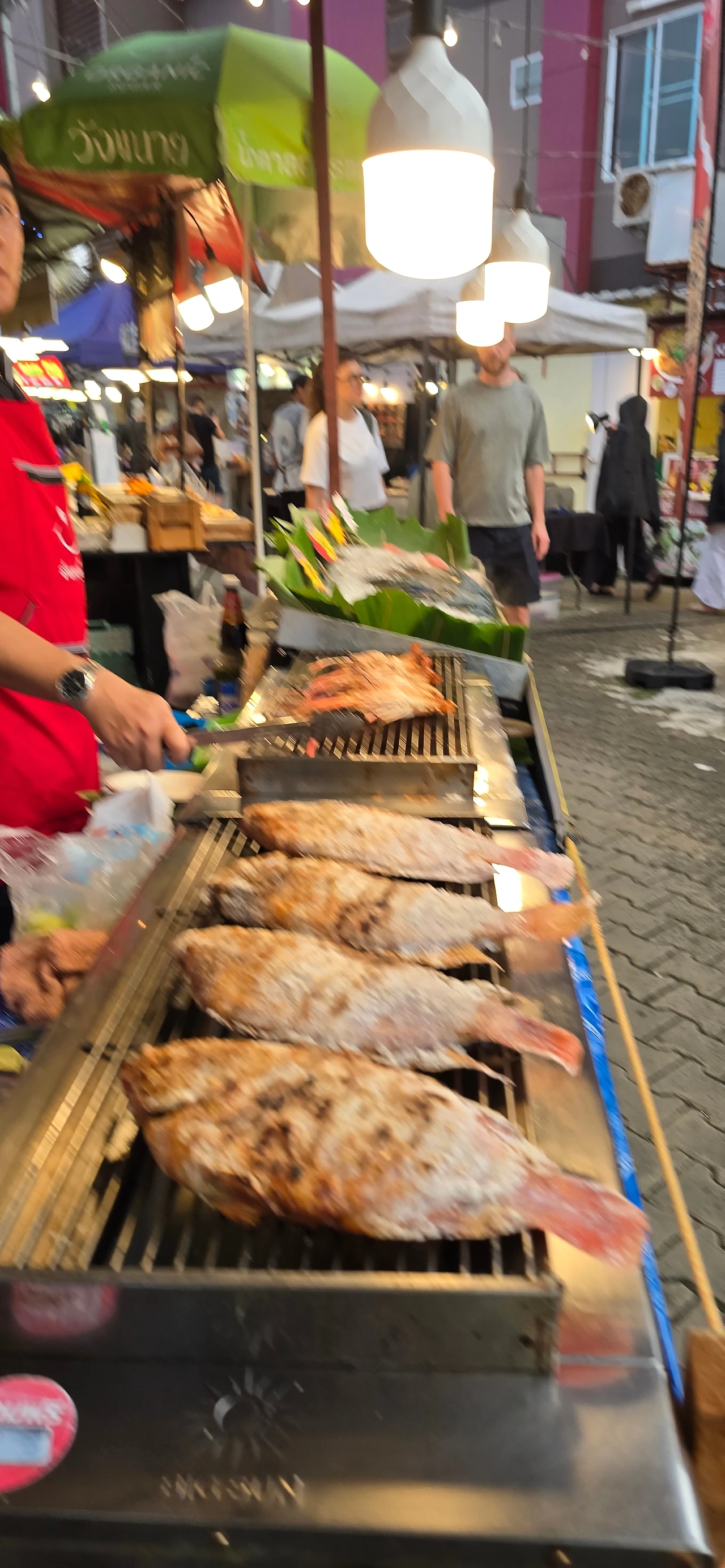 시장에 들어서자, 색색의 옷가지들과 코끼리바지, 손으로 짠 가방, 반짝이는 액세서리와 장난감, 그리고 태국식 간식들이 진열대마다 넘쳐난다.