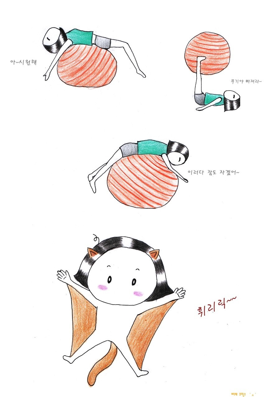 날다람쥐마냥 짐볼에 달라붙어