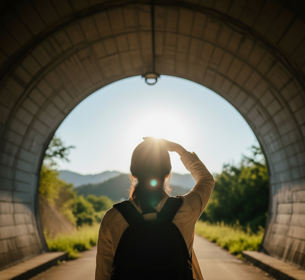 햇빛이 내리쬐는 밖으로 나오는 순간