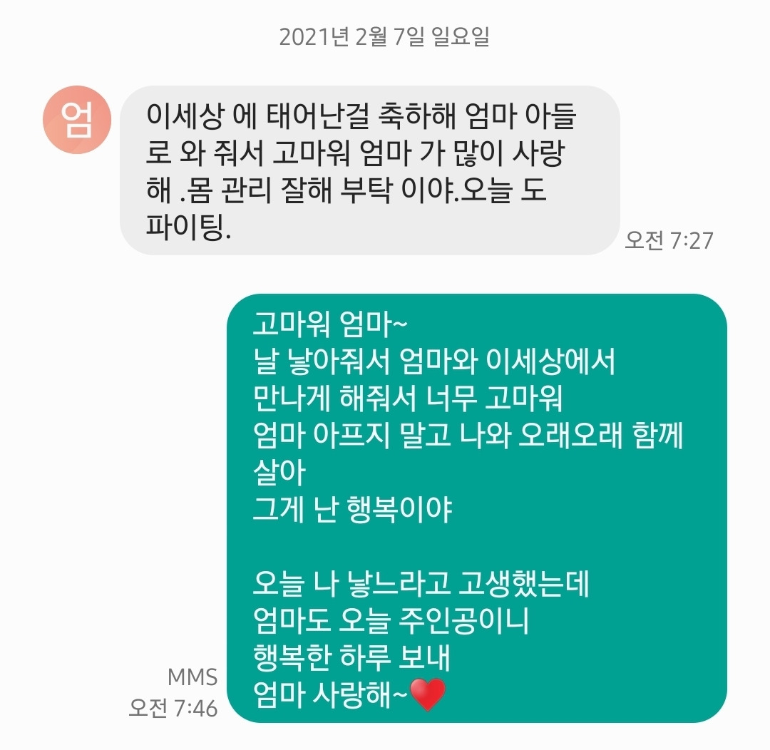엄마의 문자를 받고 나도 모르게 주르륵 눈물이 흘러내렸다