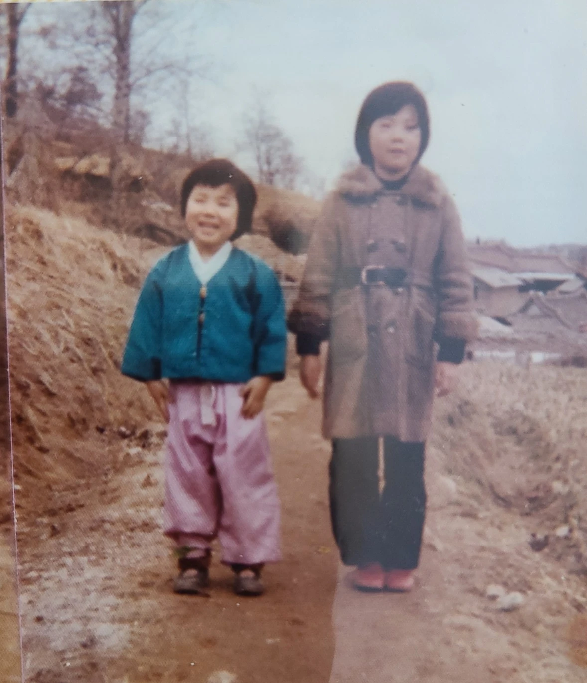 배추를 다듬던 칼을 내던지고 누나에게 달려간다