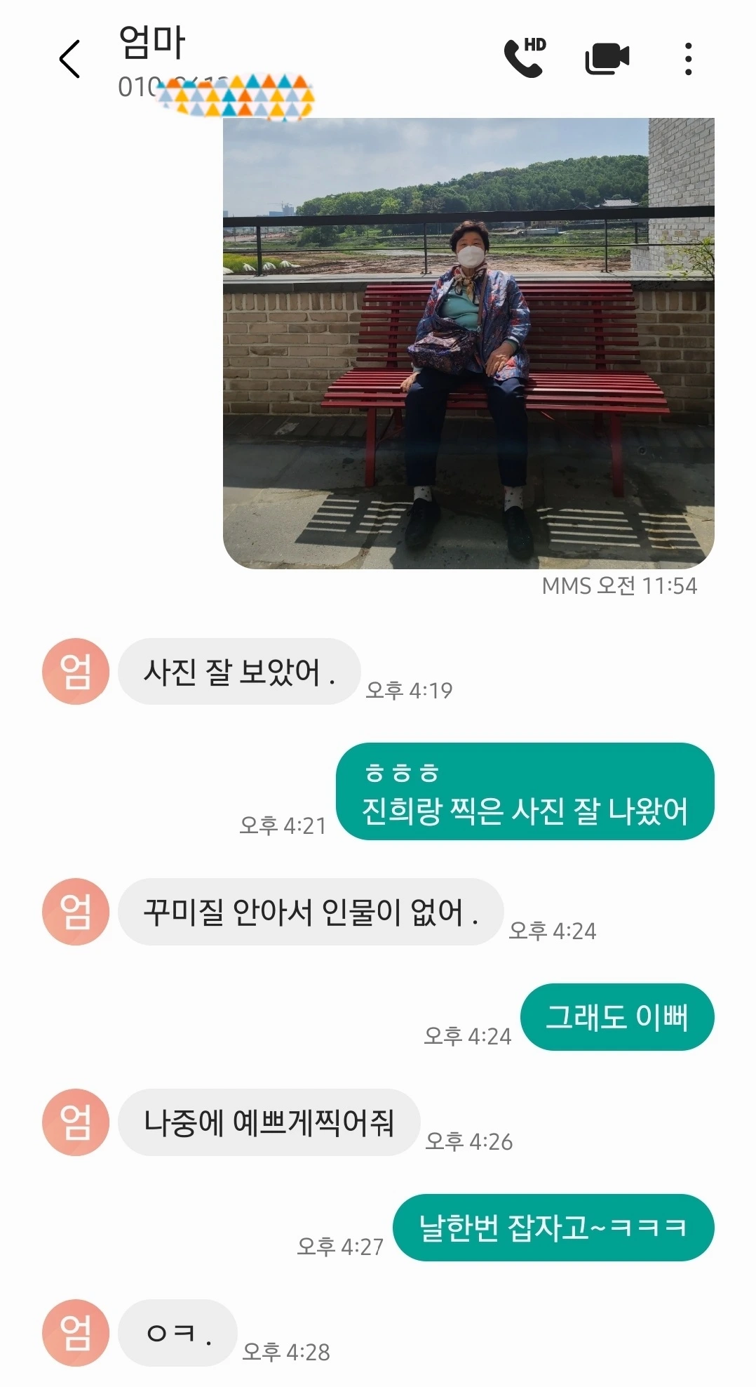 주말에 엄마와 나드리 나갔다 찍은 사진을 오전에 문자로 보내드렸다