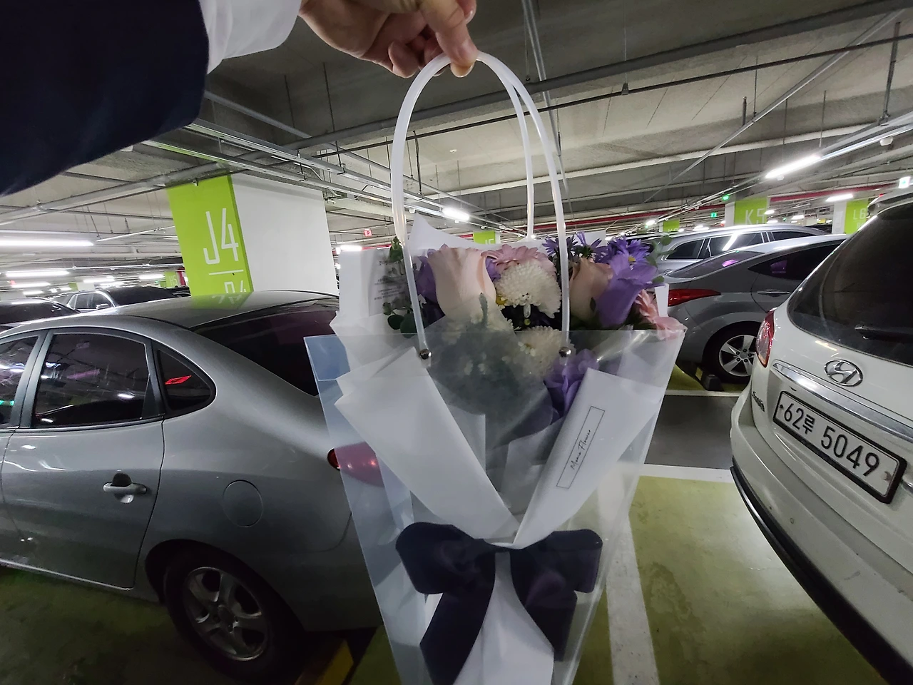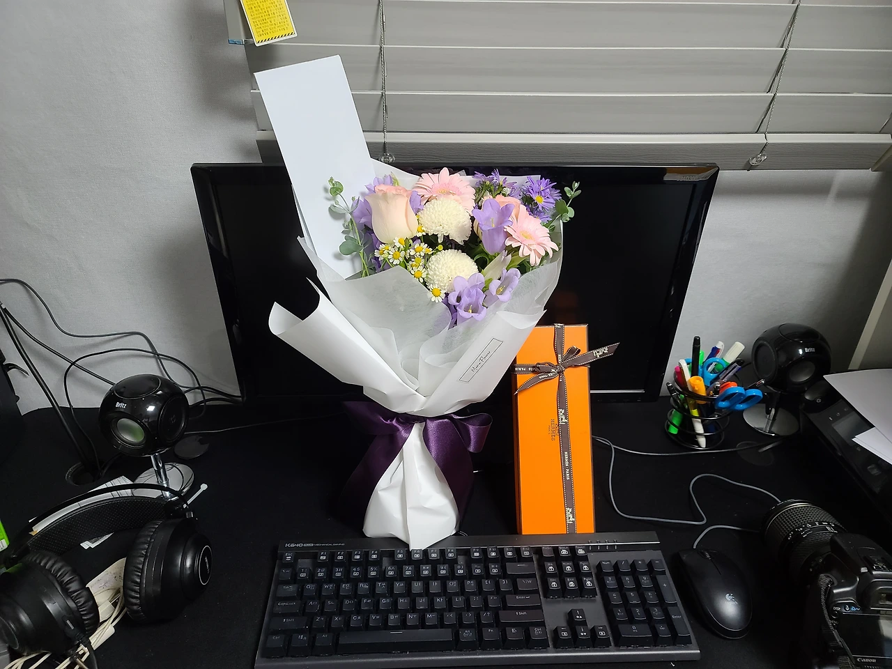저녁 퇴근길에 꽃다발과 향수를 샀다 캄파놀라 꽃 위주로 꽃다발을 만들었다