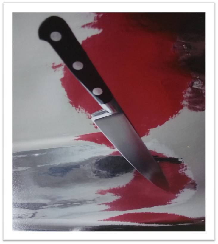 사진 2. 내담자가 선택한 사진 - 칼이 꽂힌 피가 흐르는 사진(울라 하콜라의 트라우마 포토 중에서)