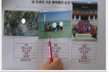 좋은 세계(quality world)를 탐색하기 위해 “가장 행복했던 순간” 사진을 각자 준비해 와서 전시회처럼 감상하였다. 희망하는 분부터 자신의 이야기를 시작하였다.