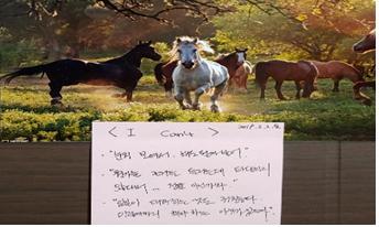 상 1: 본인은 그럼 백마인가요? (네) 어쩌면 이 사진도 I CAN 사진 같아 보여요. 내가 갈 방향을 찾아 달리고 있어서.