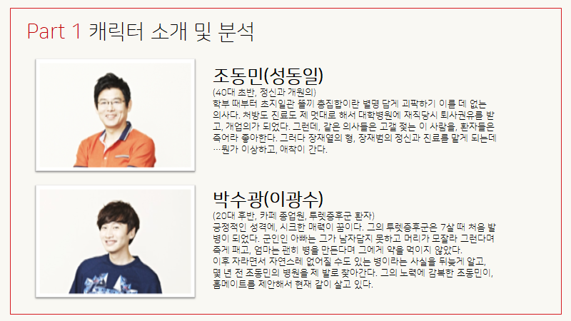 개인적으로 방영할 때 본 드라마가 아니라, 누군가의 추천으로 우연히 접하게 된 드라마였는데, 나의 인생드라마 세손가락에 들만큼 좋아하게 된 드라마다. 이 드라마는 정신질환을 가진 ‘특별한’ 사람들의 이야기가 아닌, 트라우마들을 하나 둘씩 가지고 있는 나 혹은 우리들의 이야기다.
