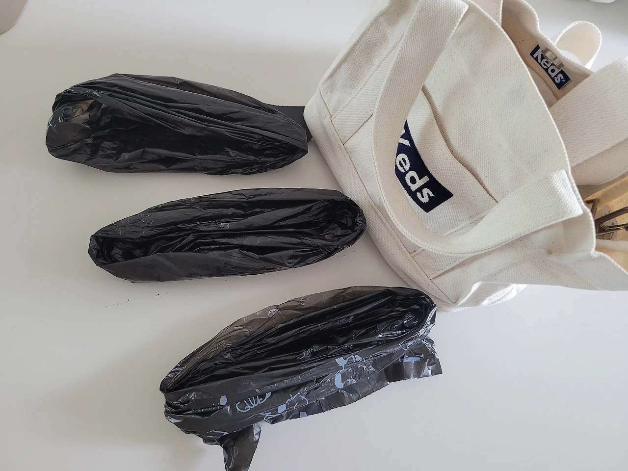 강아지와 산책을 나갈 때면 배변봉투 세장을 바로 쓸 수 있도록 펼쳐서 준비한다. 한번 나가면 보통 대변을 세 번까지 보기 때문... 사실 롤로 된 봉투는 하나씩 뜯어 쓸 수 있도록 되어있기에 통째로 들고나가도 무방하다. 그걸 알면서도 항상 봉투세장은 저렇게 따로 들고 간다. 심지에 중간에 봉투를 사용하면 다시 개수 맞춰 채워놓는다; 또 시작되었군...