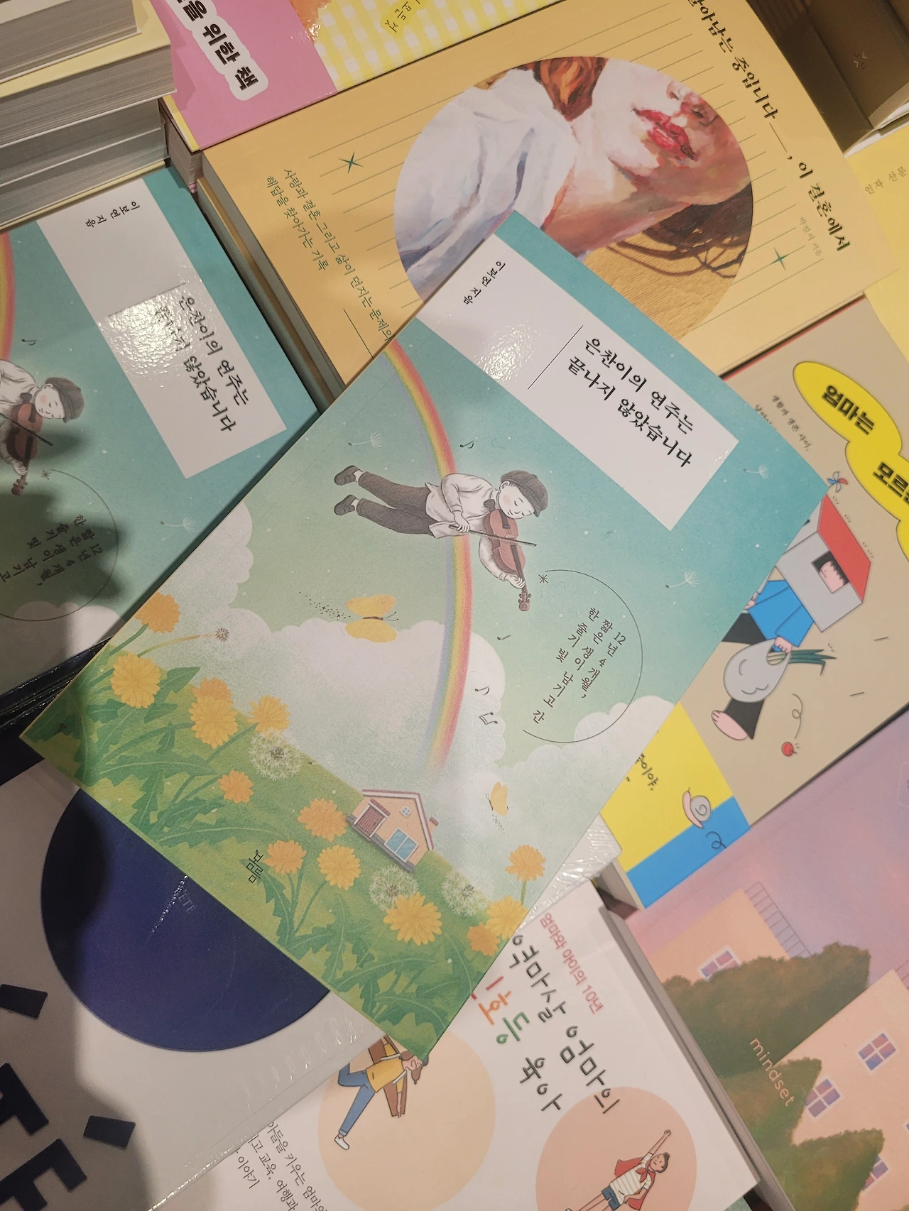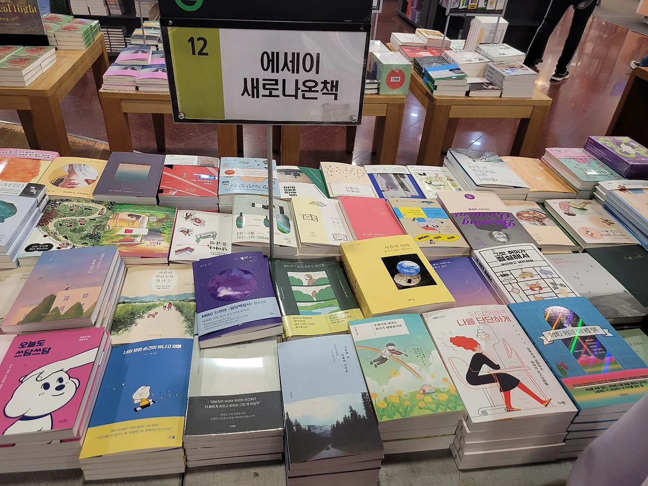 2층으로 된 커다란 서점 안, 에세이 신간 중 은찬이의 책이 배치되어 있었다.