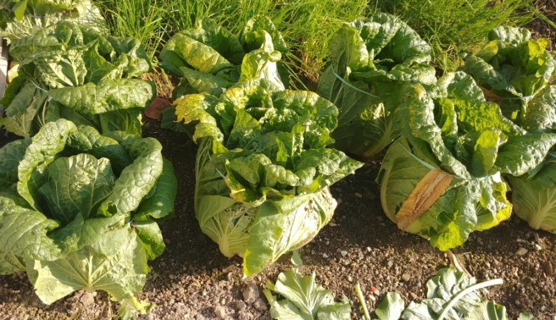 집 앞 작은 공간에 몇 포기의 배추가 있었다. 아직 김장 전인지 수확하지 않고 예쁘게 묶어 놓았다.