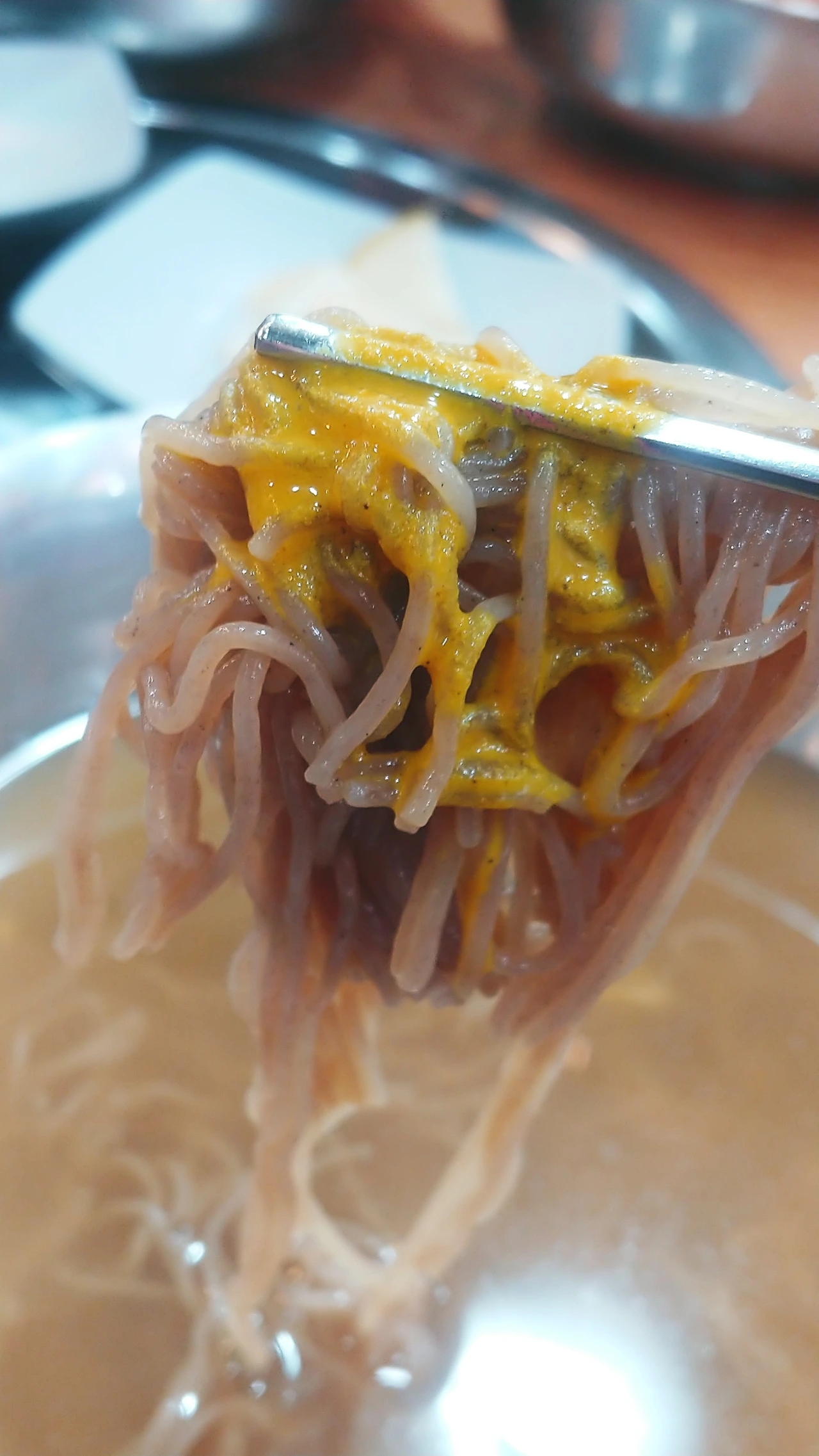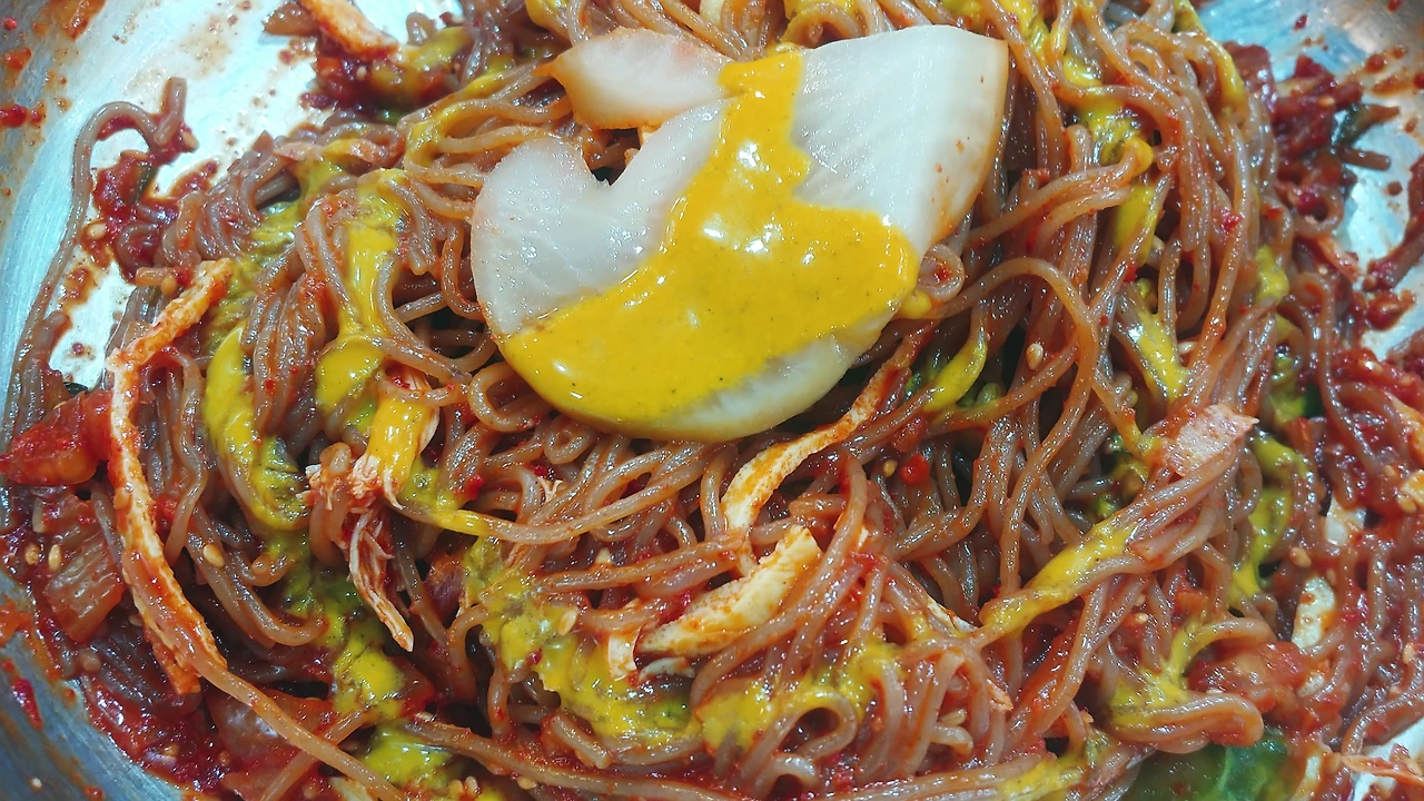 겨자 배틀의 최후. 노란색으로 변해버린 냉면 육수