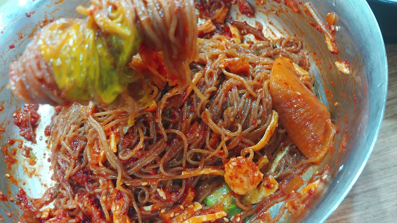 음식이 나오기 전, 어색한 침묵을 깨려는 시도로 몇 마디 대화가 오갔고, 주문한 냉면이 나왔다.