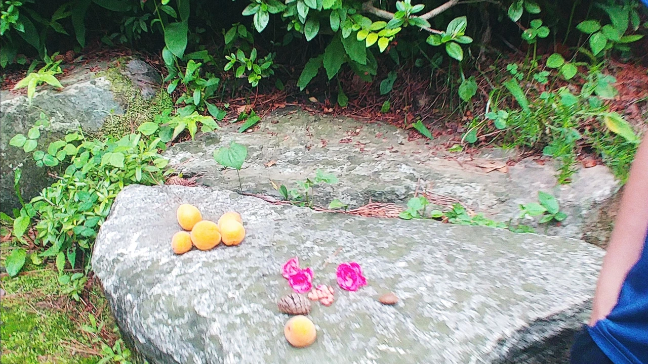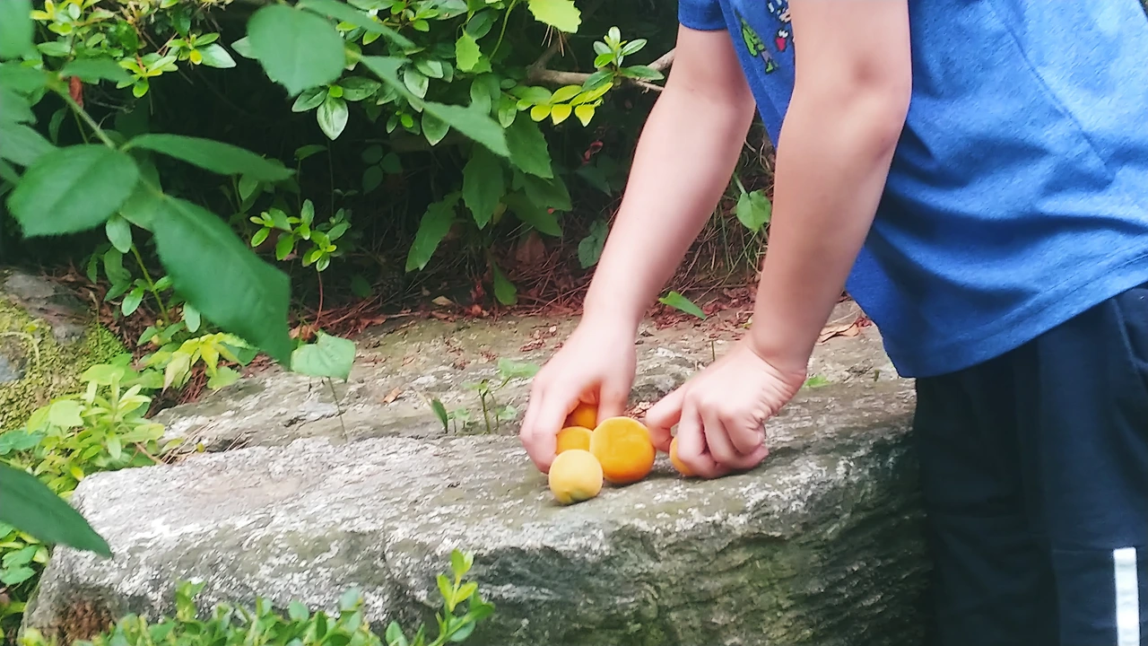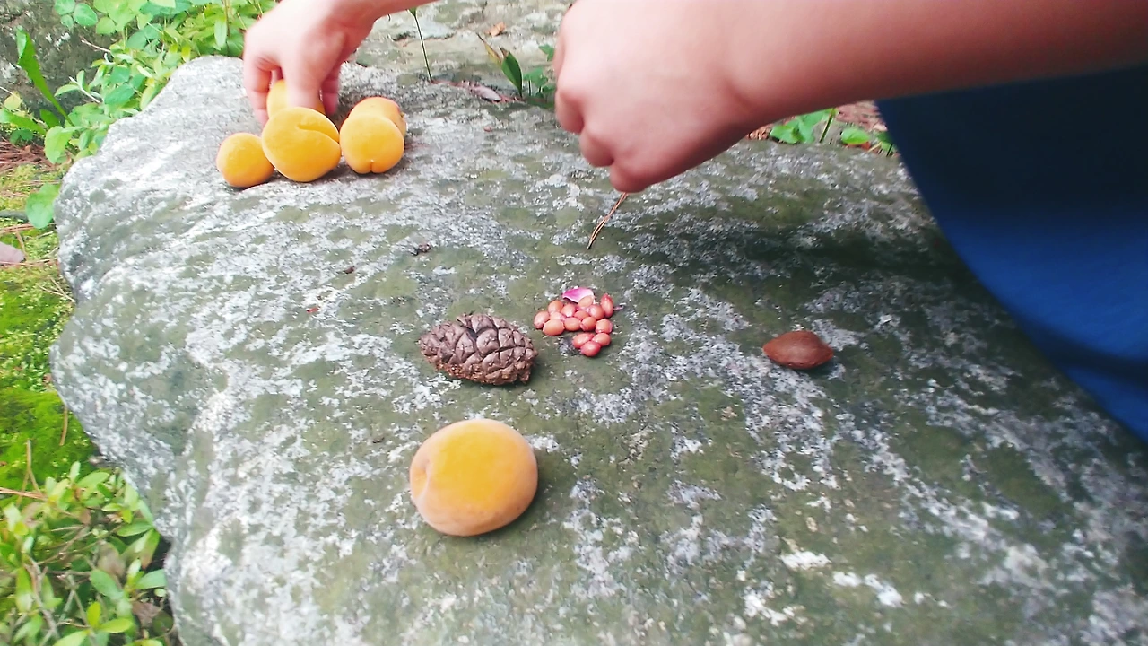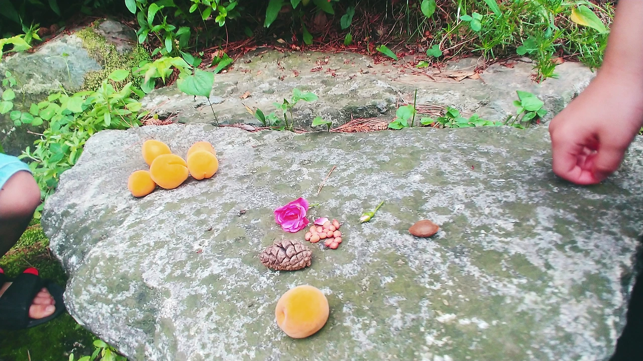 내가 이렇게 욕심 그득한 생각을 하고 있을 때, 아이들이 다람쥐가 자주 오는 바위 식탁에 다람쥐를 위한 한 상을 차려놓는다. 할아버지가 바위 위에 견과류 등 다람쥐를 위해 이것저것 자주 놔주시는 것을 따라 하는 모양이다. 앵두나무에 달린 마지막 앵두를 아이들이 야무지게 먹고 씨앗을 모아둔 너희의 예쁜 마음. (앵두 씨는 먹고 퉤- 뱉는 것 아니었니? 언제 이렇게 다 모아놨담?) 다람쥐가 씨앗을 좋아한다고 생각한 것인지 살구를 먹고 난 속 안의 씨앗. 그리고 푹 익어서 살구색이 되어버린 매실까지. 아주 훌륭한 계절밥상이다.