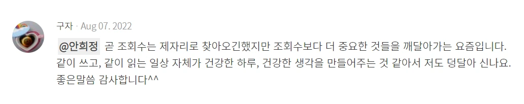 [브런치를 시작한 지 3개월 차가 되며 썼던 글에 대댓글로 썼던 글. 글쓰기로 건강한 생각을 얻었다.]