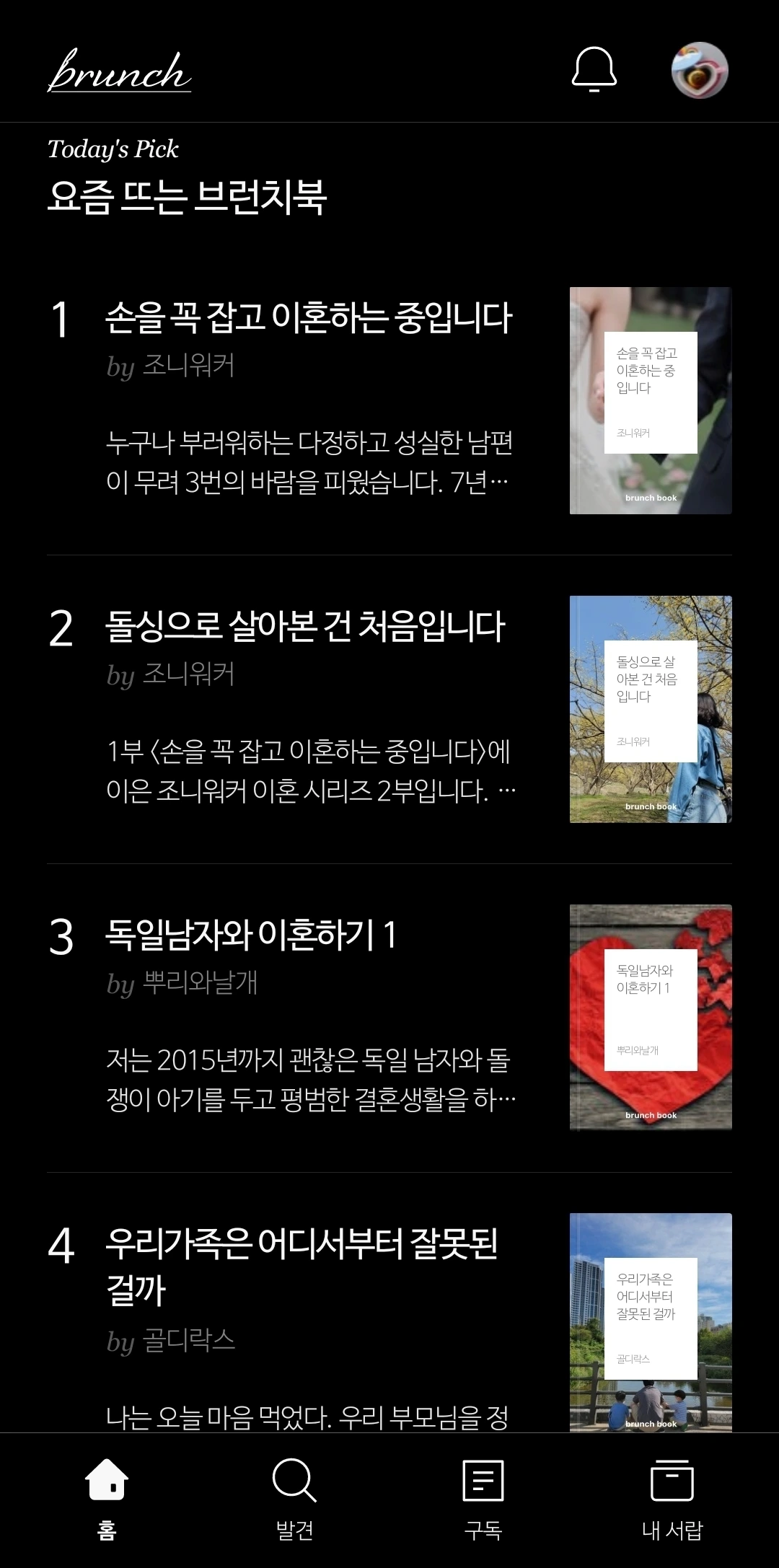 요즘은 세상이 바뀌었지.. 를 실감한다. 이혼과 관련된 방송프로그램도 늘었고, 그 자체가 숨겨야 하는 일이 아닌 '우리네 사는 이야기 중의 일부', '공감하고 함께 고민해 볼 이야기'라고 여겨진다. 나도 어느 날 밤, 브런치 메인에 뜬 이혼의 과정을 담은 브런치북을 보고는 그날 밤, 거의 완독을 한 적이 있다. 다른 이유들보다 '사람 사는 이야기'라 공감이 갔기에 집중해서 읽었다.