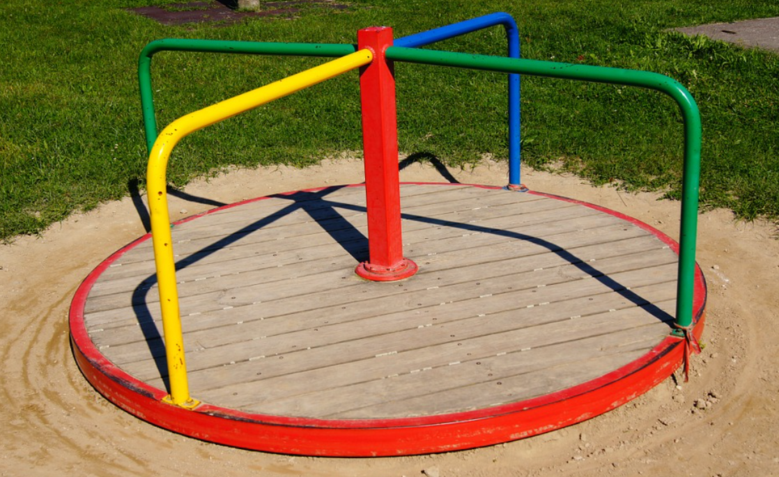 내가 다친 것은 지금의 우리 아이만 할 때쯤이다. 그 시절, 매우 활발한 성격이었던 나는 친구와 롤러스케이트를 타고 아파트 단지 곳곳을 겁도 없이 쌩쌩 누비고 다녔다. 사고가 나던 날. 친구와 롤러스케이트를 탄 채로 놀이터의 놀이기구들을 탔다. 겁도 없이. 그림 상의 지구본 원심분리기와 유사한 놀이기구(쌩쌩이-라고 불렀다.)에 바퀴 달린 신발을 탄 채로 올라탔고, 친구는 쌩쌩이를 최고 속도로 돌렸다. 사고는 한순간이었다. 일반 신발을 신은 채로 타도 위험한데 롤러까지 탔으니. 결국 사고가 날 수밖에.