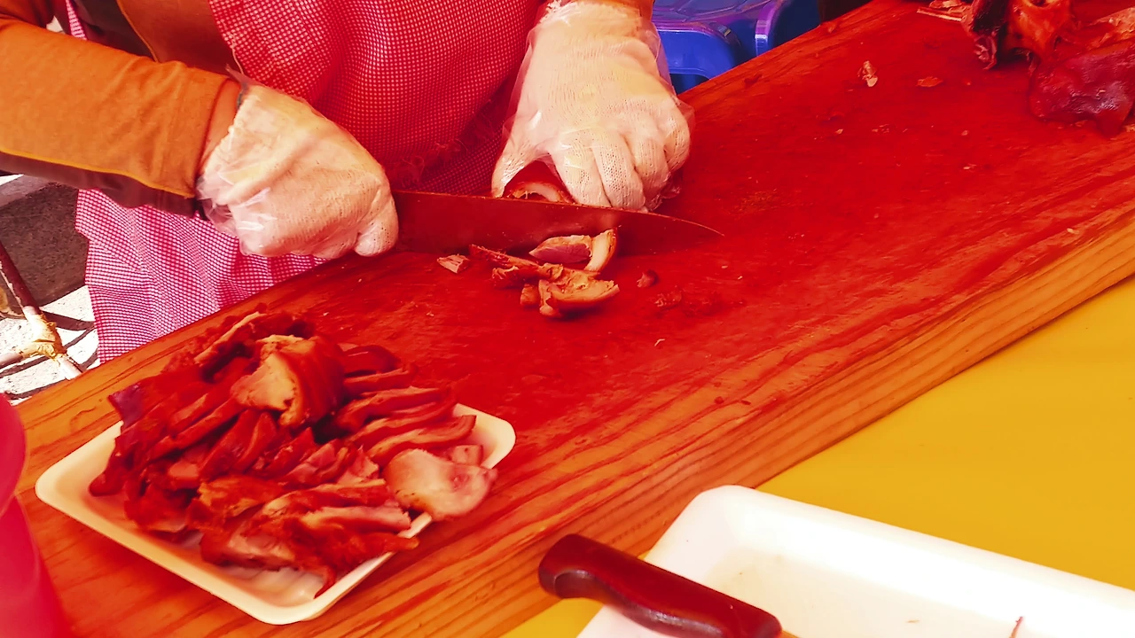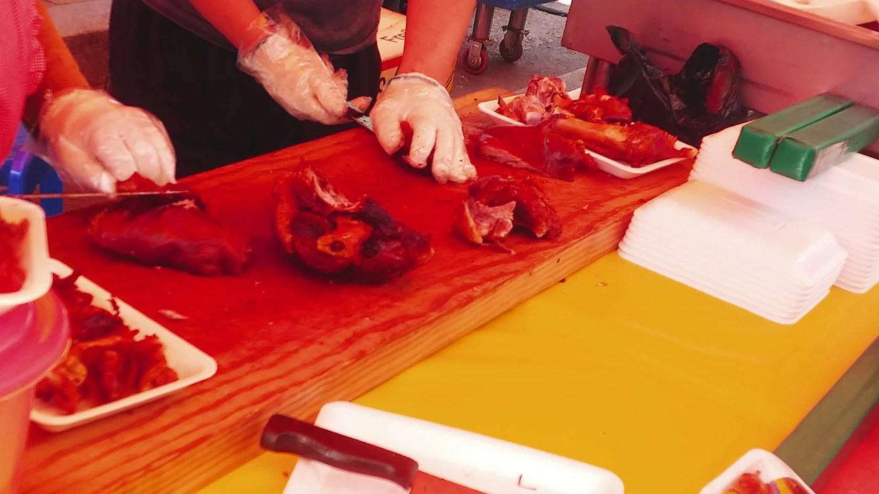(따끈한 족발을 쓱쓱 쓸어 수북이 담아주시는 사이 가판대 앞에 마지막 하나 남은 돼지 껍데기까지. 3000원이라는 착한 가격에 놀라며 족발 중간 사이즈 하나, 돼지 껍데기 하나- 저렴한 가격에 장바구니에 추가해 넣었다.)