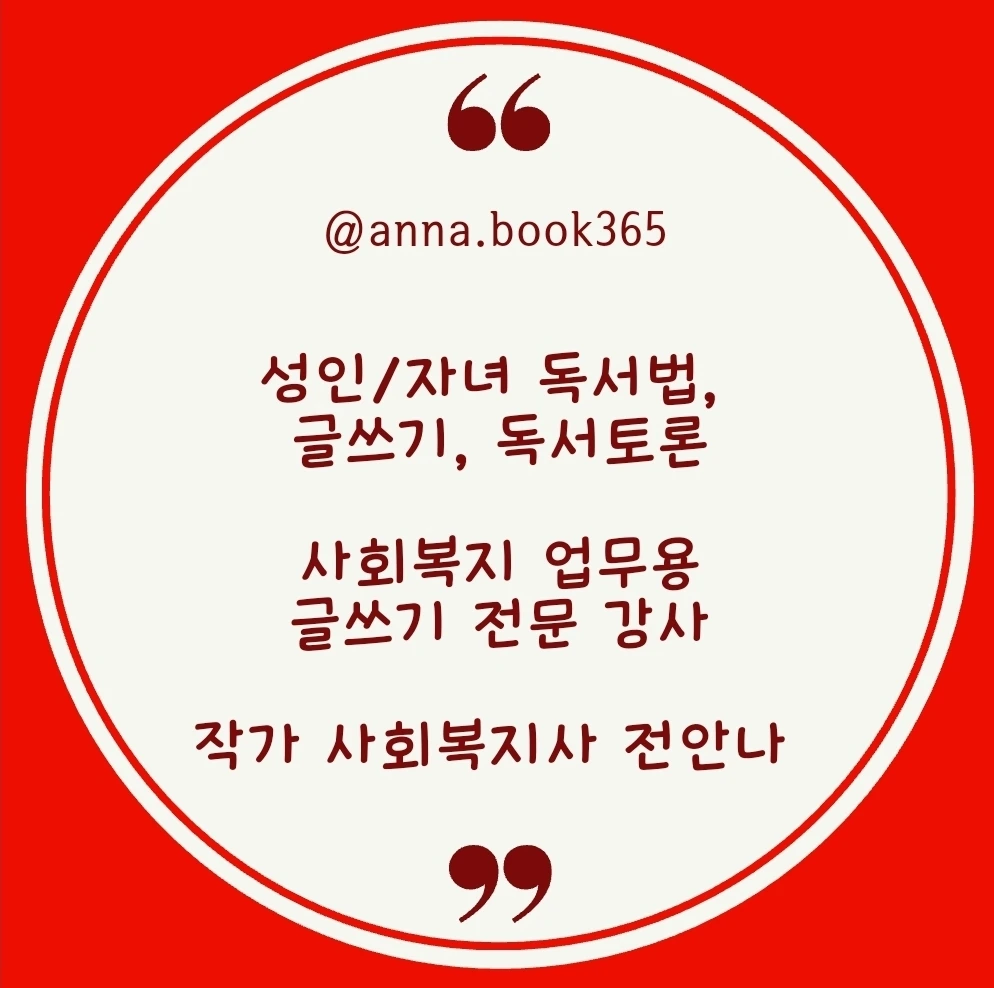 사회복지사를 그만두려 했다가 오히려 소진을 극복하고 17년째 근속할 힘을 얻게 되었고, 제 경험을 바탕으로 독서법 책을 집필하여 작가로도 활동을 하게 되었습니다. 그리고 전국사회복지사협회 보수교육에서 ‘사회복지사 소진과 퍼스널브랜딩’을 주제로 사회복지사를 돕는 강사가 되었습니다. 저는 하루 한 권 책 읽기 8년 차로 이제 곧 2,000권 독서를 달성할 예정이고, 앞으로 저의 목표는 하루 한 권 책 읽기로 60세까지 10,000권의 책을 읽는 것입니다.