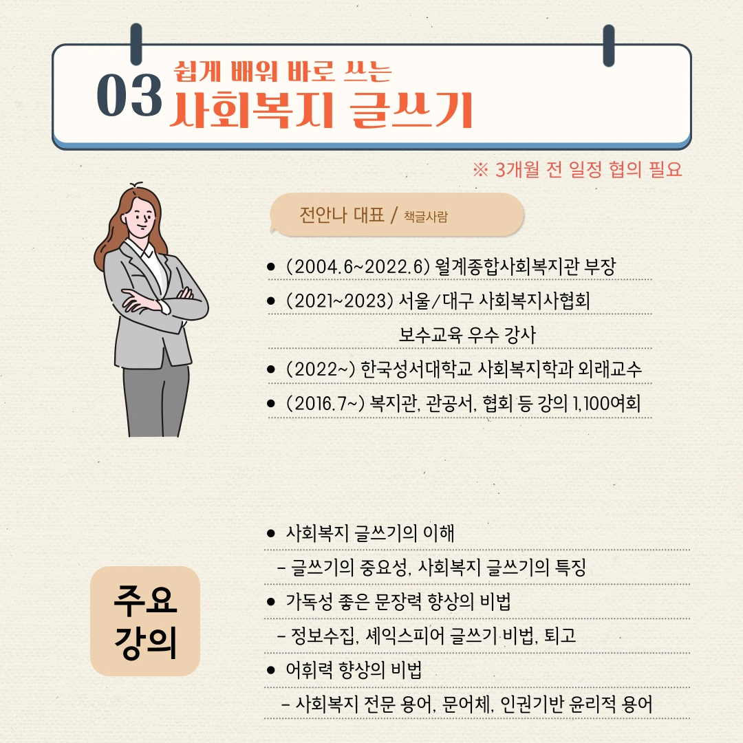 사회복지사의 업무용 글쓰기는 사실과 정보를 정확히 전달하는 것을 목적으로 하는 비문학 글쓰기입니다. 따라서 주관적이고 추측으로 작성하는 것보다는 객관적이고 정확한 수치를 넣어주는 것이 전달력을 높일 수 있습니다.