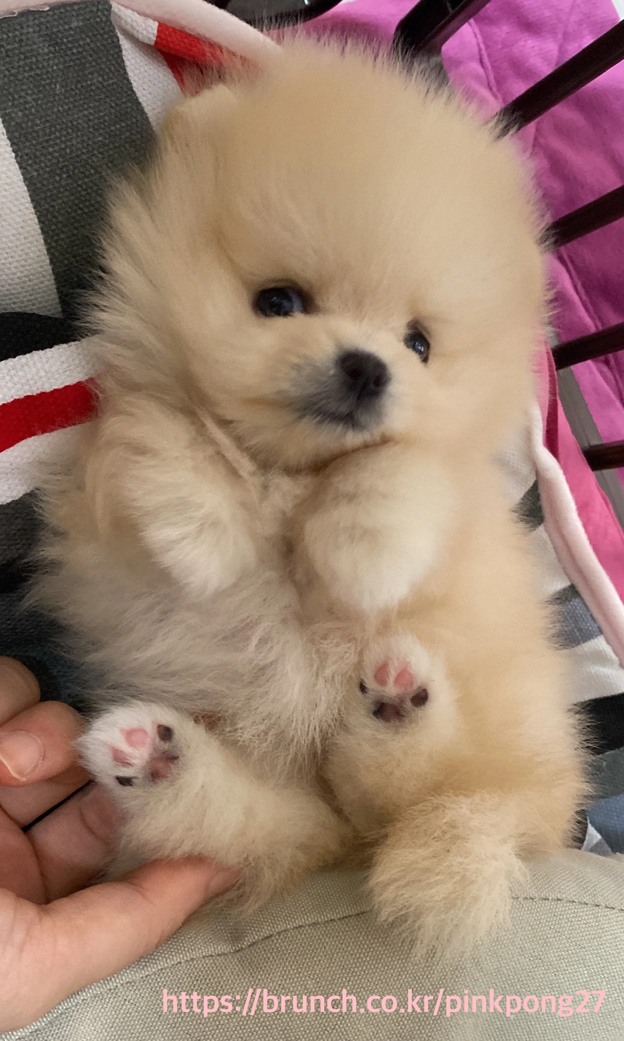 핑크콩이라는 이름을 풀네임으로 부르기가 힘들다는 가족들의 의견을 받아들여서 성은 놔두고 이름만 부르기로 했다. 털뭉치 녀석이 아직 자기 이름을 모르니 알게 해줘야겠다 싶었다. 그래서 우리는 그 쪼그만 귀에 대고 콩이를 하루에도 몇십 번씩 속삭여줬다. 알아는 듣는 건지 태평하게 누워 있는 모습이 웃기기도 하고 귀엽기도 했다.
