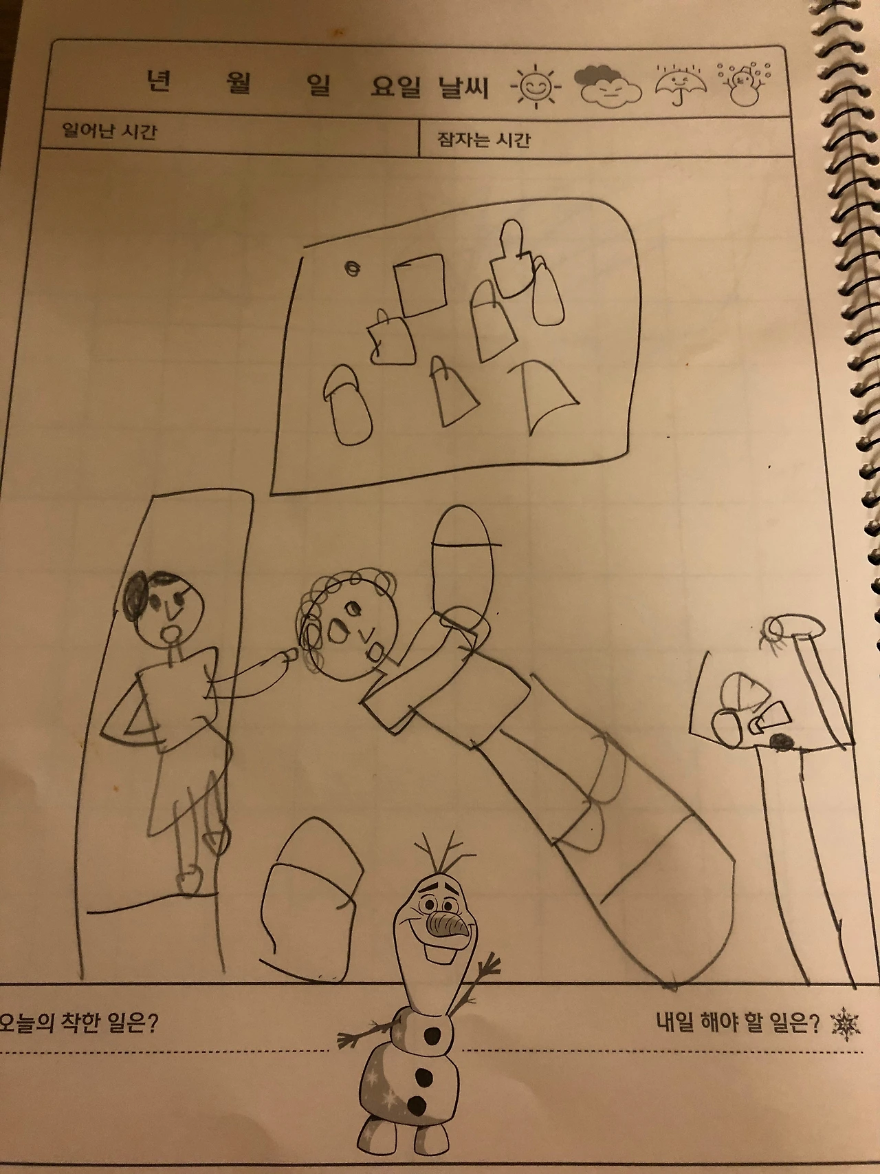 그즈음 우리 부부는 남편의 음주와 늦은 귀가 문제로 싸움이 잦았다. 심지어는 우리 딸 생일도 까먹고 그날 술 약속을 잡았으니, 한때 '딸바보' 소리 듣던 그도 제정신은 아니었던 것 같다. 아이와 아이 아빠의 트러블도 심했다. 내가 운동 갔다 집에 돌아오면, 남편은 안마의자에 누워있고 아이는 TV 앞에 방치되어 있거나, 남편과 아이 둘이서 싸우고 있었다. 아이도 그런 상황을 인지하고 있었으니, 내가 무슨 얘기를 하는지 알아듣는 것 같았다.
