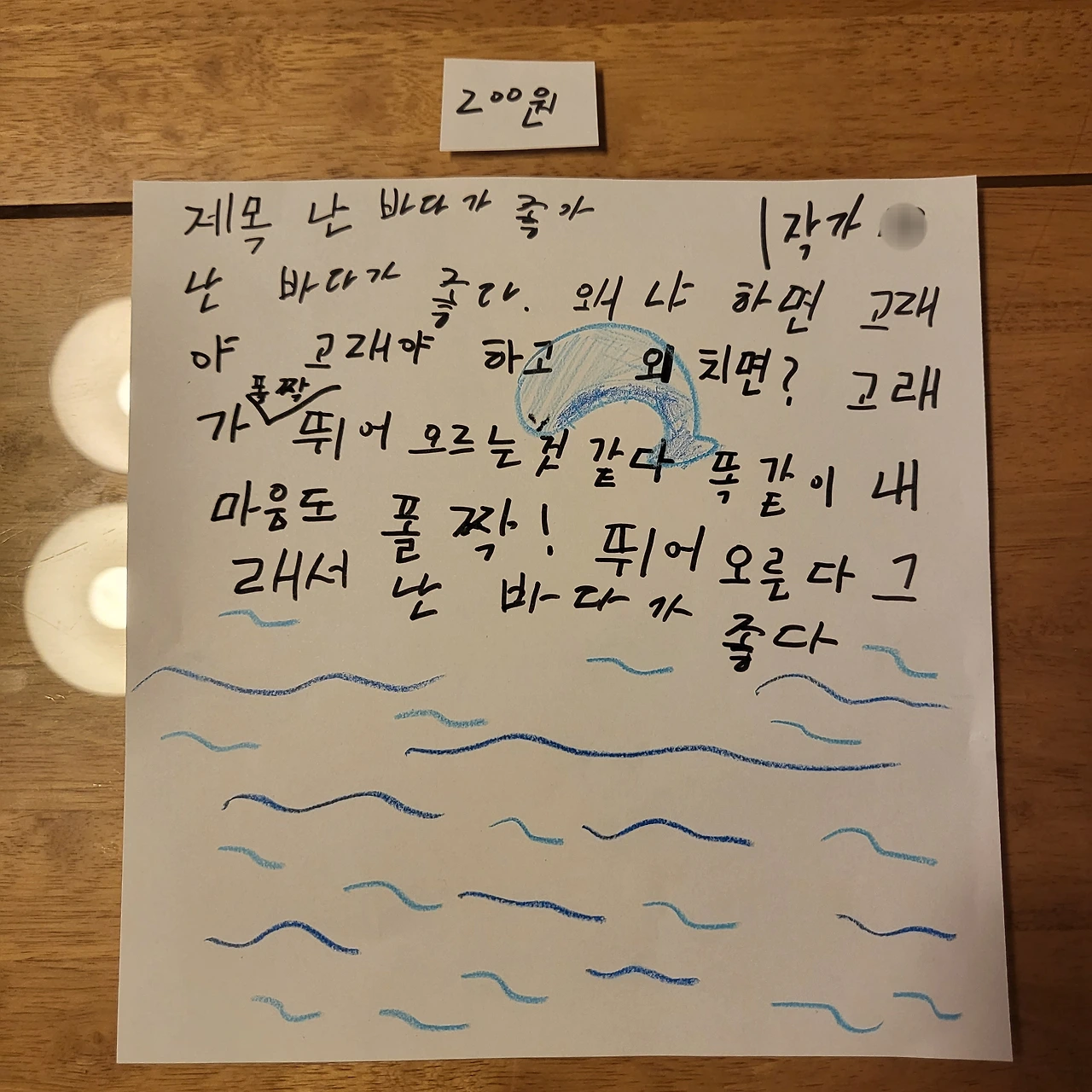 그리고 오늘 이 글을 봐주신 구독자분들께 드릴 작은 선물이 있어요. 제가 최근에 어떤 시 한 편을 샀는데요. 이 작품의 작가는 바로 저희 딸 금이입니다. 금이 왈, "엄마, 내가 시를 썼는데 이거 마음에 들면 200원에 사."