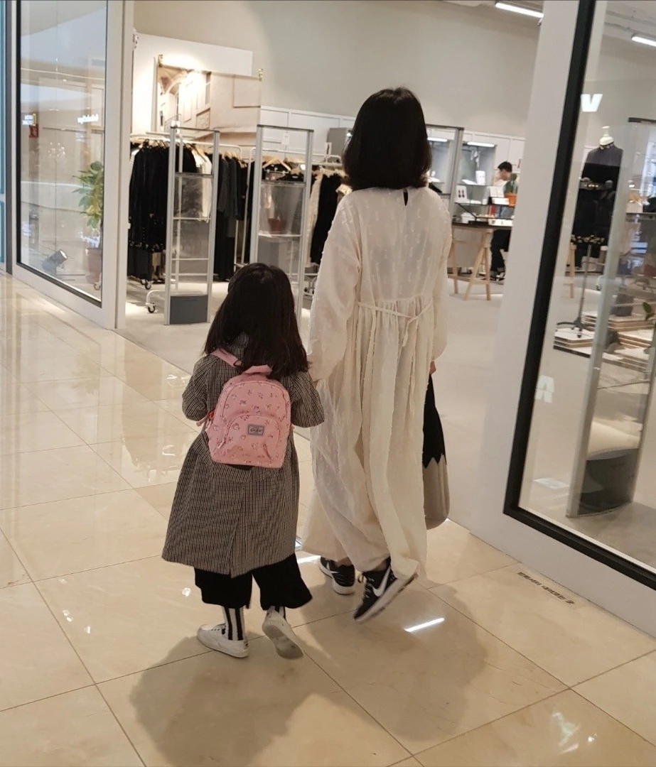 두손 꼭 잡은 유치원 시절 시아와 시아엄마(나)