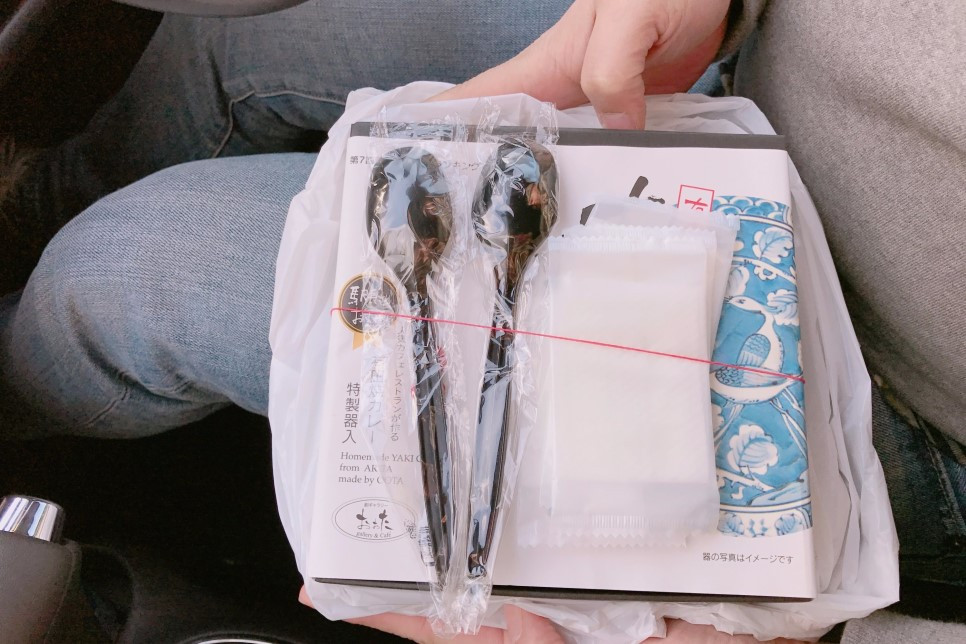 역사에 들어서면 오른편에 있는 매점에서 판매하고 있다. 원래는 갤러리 오오타(ギャラリーおおた)라는 곳에서 판매하는데 아리타역에서도 판매하니 굳이 그곳까지 가지 않았다. 아리타 야키카레 에키벤이 규슈 에키벤 그랑프리에서 우승과 준우승을 연이어 수상했다고 하니 맛을 보지 않을 수 없다. 안내 책자에서는 1,500엔이라고 보았는데 실제로는 1,600엔이었다. 이 가격은 역사에서만 좀 더 비싸게 파는 것인지, 가격 자체가 오른 것인지 모르겠다.