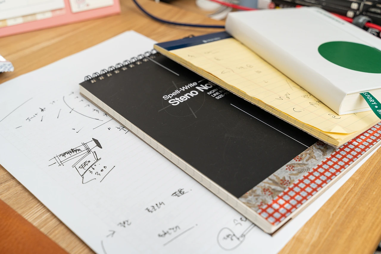 책상 오른쪽에는 다양한 노트 테이킹 용지와 다이어리가 있다. A4 이면지는 작업 도중에 업무 관련된 전화를 받았을 때 끄적이며 사용하고 실제 테이킹은 노트에 하는 편이다. 그리고 다이어리는 올해 좀 제대로 써보려고 스타벅스에서 받은 것을 한 권 뜯었는데, 귀찮아서 포스트잍에만 적기 일쑤다. 올해도 아마 거의 새 것 그대로 버리게 될 것 같은 예감이 벌써 든다.