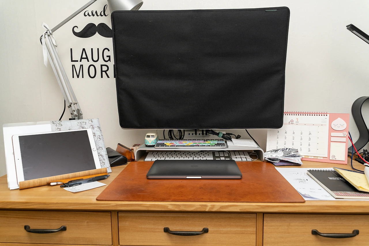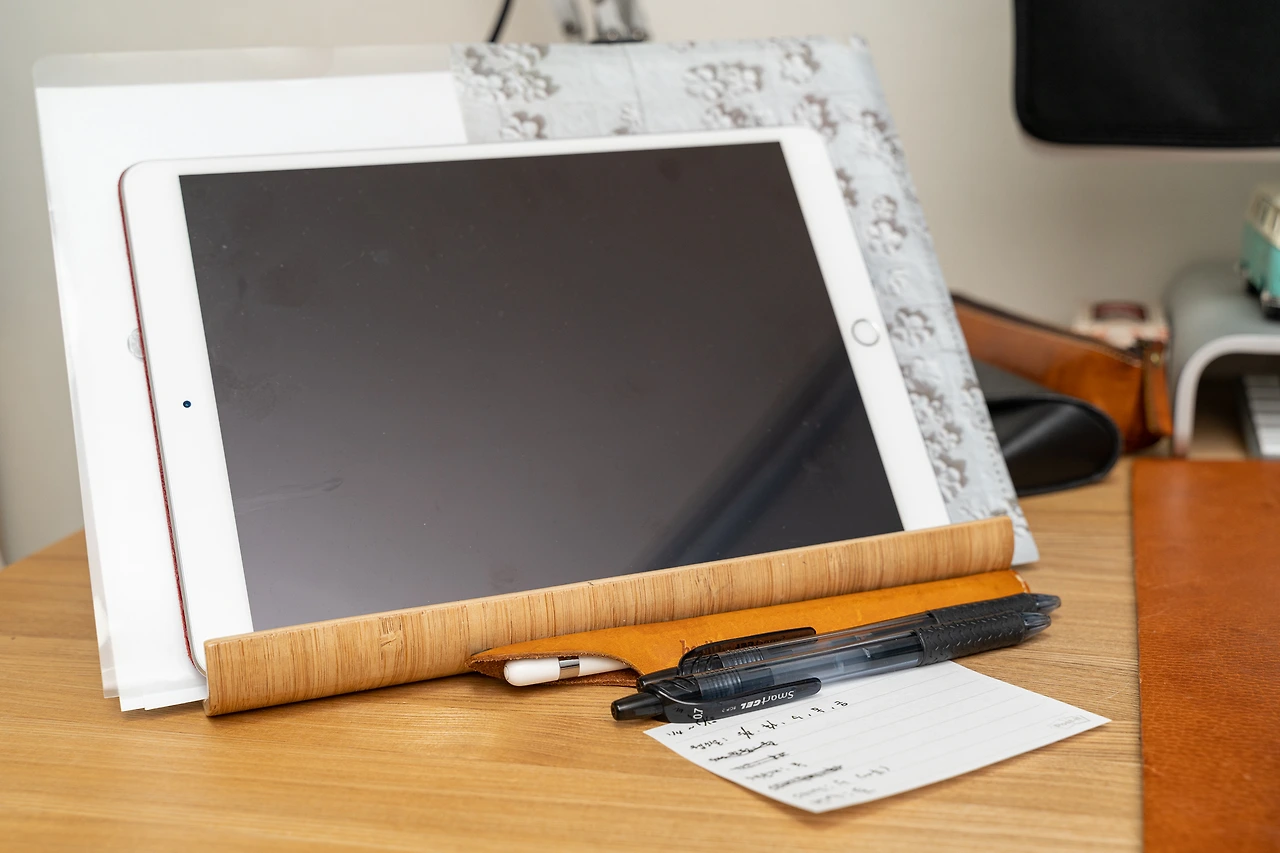 그리고 그 옆, 책상 왼쪽에는 태블릿이 한 대있다. 주로 번역할 때 PDF 파일을 띄워놓거나 메일함을 열어 놓는 용도로 쓴다. 통역 준비를 할 때는 통역 자료를 태블릿의 굿노트에 옮겨 필기하며 공부한다. 듀얼 모니터를 사용하는 사람도 많은데, 나는 듀얼 모니터보다 고개를 돌리지 않아도 한 스크린에 원문과 번역문이 같이 보이는 것이 편해서 대개 노트북 한 대로 작업을 한다. 태블릿 앞에는 매주 한 주 동안 할 일이 적힌 포스트잍을 붙인다. 매일 할 일을 끝내고 적힌 것을 지운다. 이런 아날로그 감성의 별 것 아닌 것이 왜 이렇게 재밌는지...