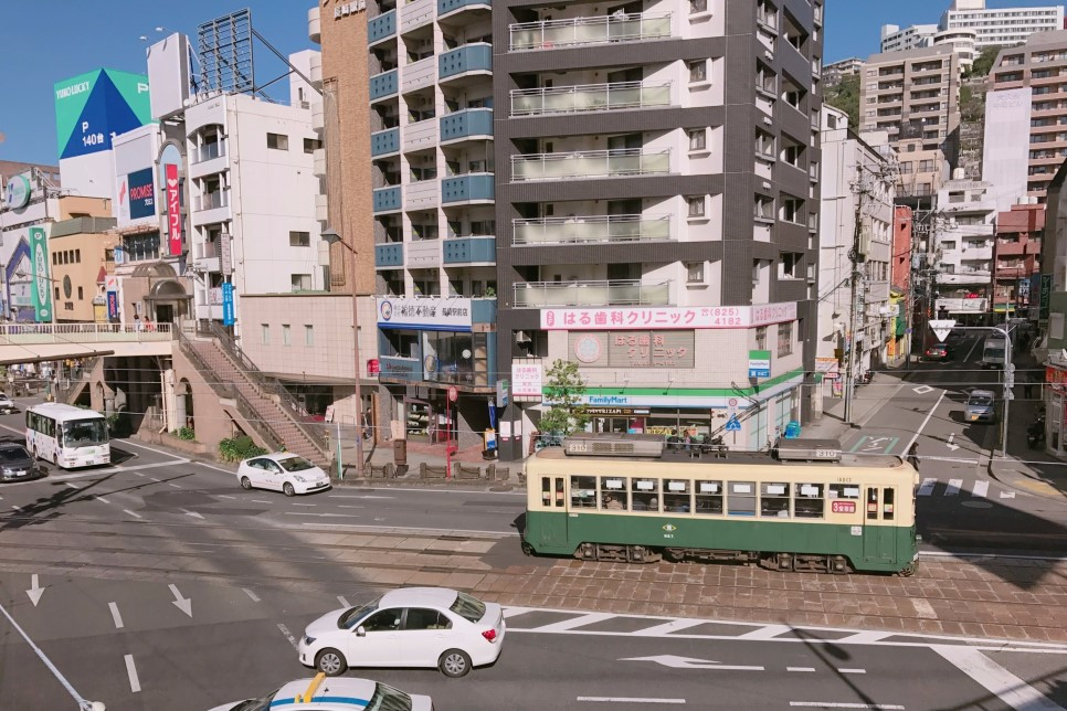 육교를 건너가던 중 나가사키의 주요 교통수단 중 하나인 노면전차가 지나가는 것을 보니 2016년 신정에 떠났던 신년 여행으로 갔던 대련 생각이 났다. 둘 다 클래식함을 갖추고 있는 예쁜 트램인데, 주변 환경이 다르니 대련과는 또 다른 느낌이었다.
