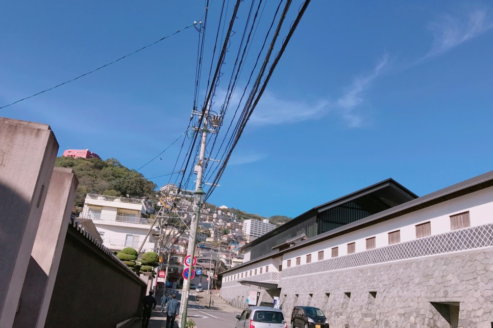 사이쇼지에서 조금 더 가다 보면 나가사키역 인근 코스의 마지막인 나가사키 역사문화박물관의 웅장한 모습이 나타난다. 위 사진은 마치 전신주와 전선을 찍은 듯 초점이 이상한 곳에 있다만, 저 사진의 주인공은 오른편의 주변 아기자기한 주택들과는 뭔가 다른 모습을 하고 있는 박물관이다. 쾌청한 날씨를 계속 즐기고 싶은 마음에 역시 내부는 들어가지 않았다.