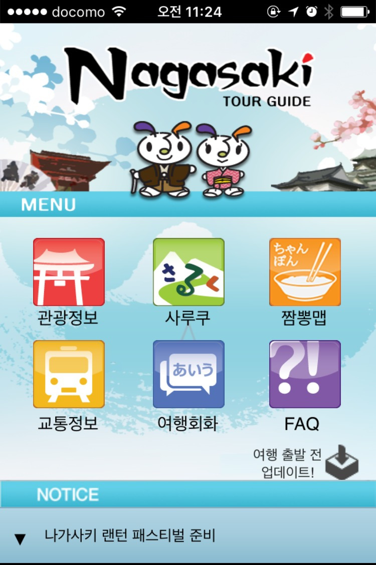명확한 목적 없이 일단 몸부터 떠나는 여행에서는 하고 싶은 것은 뭐든 해볼 수 있다. 도착한 첫날 드는 생각은 사람 많은 관광지 말고 좋은 날씨를 만끽할 수 있는 것이 뭐가 있을까였다. 그러다가 우연히 발견한 나가사키 투어가이드 앱을 살펴보았다. 이 앱은 '나가사키 관광안내 App'을 검색하고 다운로드하면 된다.