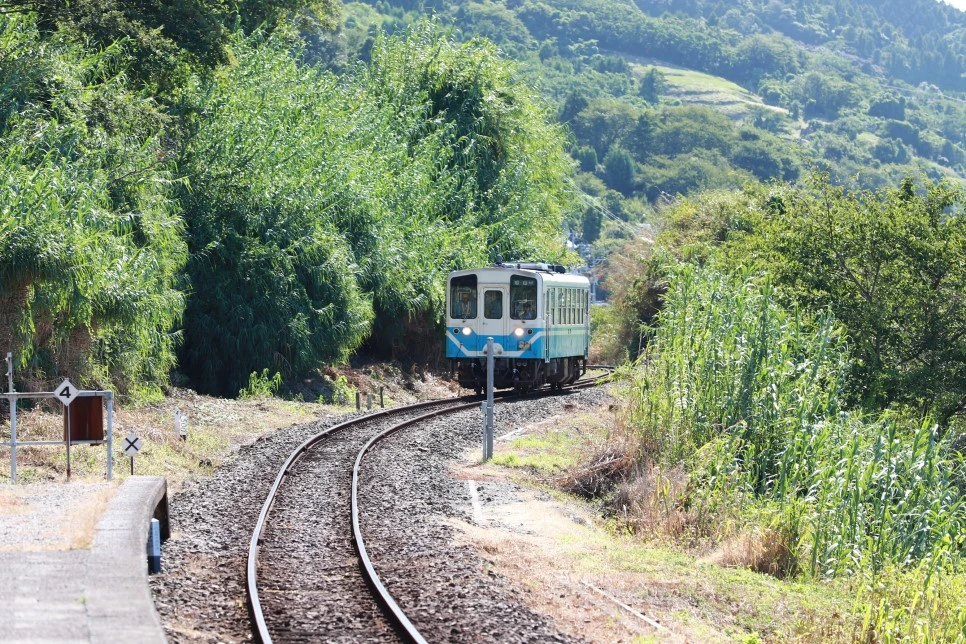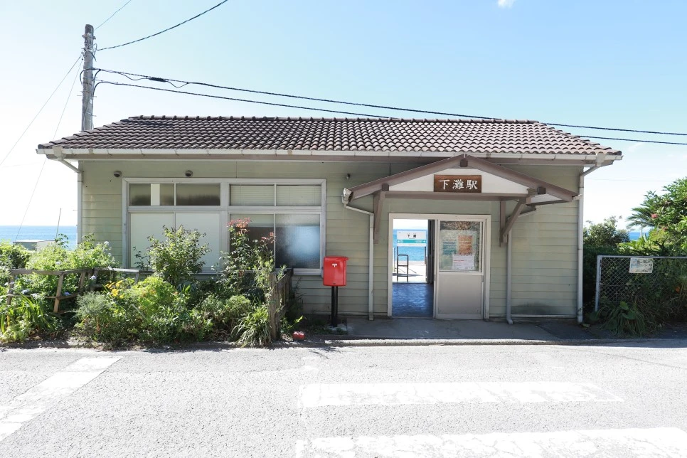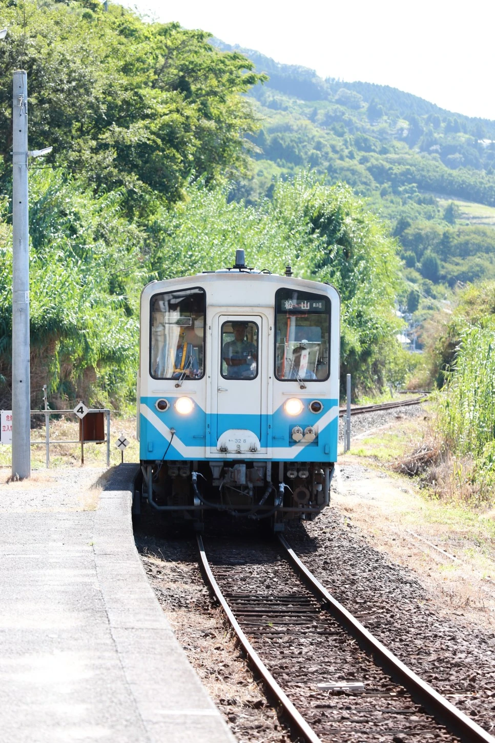 아담한 역 분위기에 딱 맞게 달려오는 열차도 한량 짜리 하늘색 열차. 기회가 된다면 렌터카 없이 열차 타고 바다 보며 이동하는 것도 좋을 것 같다.