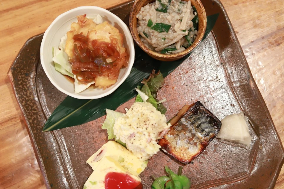 여행의 마지막 한 끼는 오카이도 맞은편 상점가의 유기농 재료로 음식을 한다는 레스토랑이었다. 오크라 튀김이 곁들여져 있었는데, 난 여전히 초딩입맛인 것 같다. 오크라의 쓴맛이 아직 입맛을 돋운다고 느껴지지는 않는다. 평소 (특히 손을 다쳤던 저 여름엔) 제대로 된 끼니를 해주지 못해 미안한 남편을 위해 건강을 챙기고 싶어 먹었던 한 끼였다.