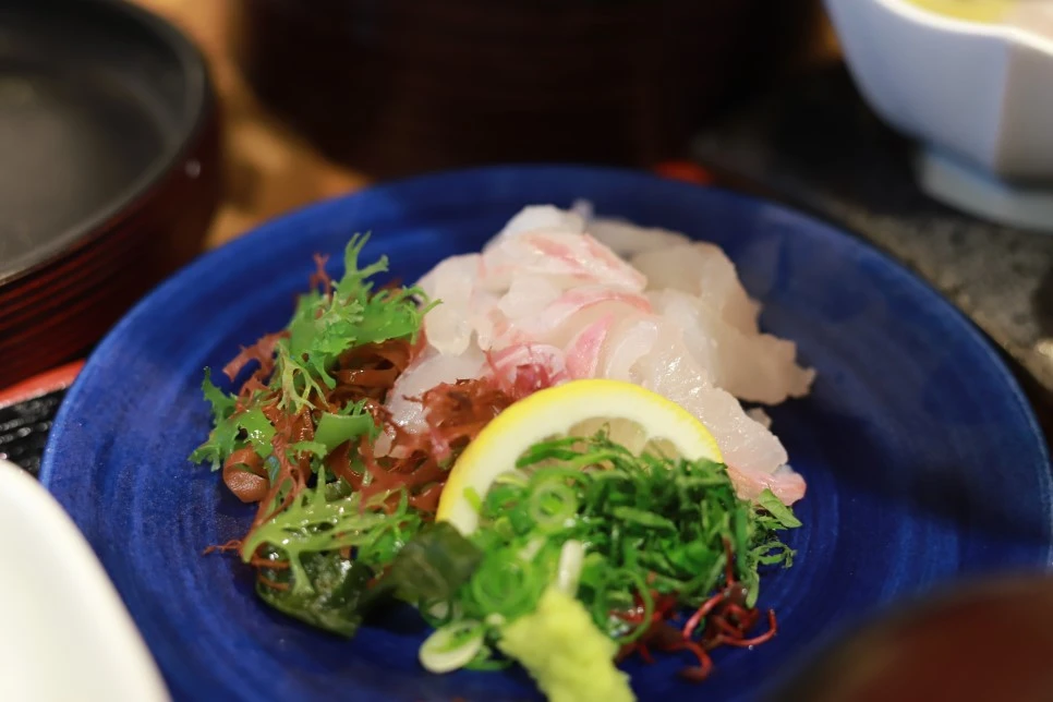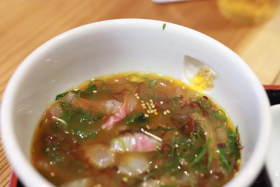 마츠야마에 오면 꼭 먹어야 할 것이 바로 도미밥(鯛めし/다이메시)인데, 마츠야마식과 우와지마식이 다르다. 마츠야마식은 도미를 얹어 지은 밥을 때문에 찐 도미를 밥과 먹는 식인데, 우와지마식은 도미회를 해초와 계란 노른자 등과 함께 섞어 밥에 얹어 먹는다. 마츠야마식 도미밥은 호텔 조식으로도 너무 잘 나와 따로 식당을 찾아가 먹지 않았고 오카이도 맞은편 거리에 있던 우와지마식 도미밥을 하는 곳에서 먹었다. 개인적으로는 마츠야마식이 무난했지만, 우와지마식도 안 먹었다면 아쉬웠을 메뉴.