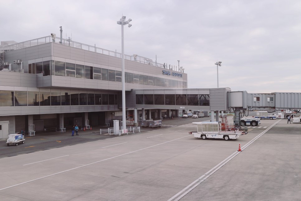사가공항은 매우 작고 국제선은 서울발 티웨이항공과 상하이발 춘추항공 둘 뿐이다. 사가 여행을 오는 사람들은 대부분 후쿠오카 여행에서 사가를 들르는 경우가 많은데, 사가 공항에서 여행을 시작하더라도 도심인 사가역으로 가는 공항버스가 있어 이동이 용이하다.
