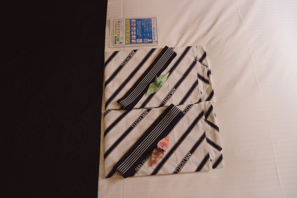 둘째날 아침 방 문에 "Do not disturb"와 "Clean up please"가 각각 양면에 쓰여진 자석을 붙이고 나가려던 중 일반적인 청소를 요청하는 메시지가 아닌 좀 더 복잡한 설명이 쓰여져 있었는데, 시간이 없어 그냥 붙이고 나갔다. 저녁에 돌아오니, 이불이며 화장실이며 청소가 전혀 되어 있지 않았고 새수건과 비어진 쓰레기통만 보였다. 이게 뭘까 싶었는데, 이렇게 수건 교환과 쓰레기통 청소만 하면 생수 2병을 준다. 이것이 호텔에서 홍보하는 일반 에코플랜보다 한단계 더 높은 에코 캠페인이었다. 청소가 되어 있지 않은 것이 마음에 걸려 셋째날 아침에는 방문에 아무것도 붙이지 않았더니, 그날은 청소가 되어 있었고 대신 생수는 없었다. 생수 대신 200포인트 쿠폰이 놓여져 있었다. 이 쿠폰을 프론트에 내면 생수로 바꿔주는 것으로 알고 있었는데, 나중에 들으니 인터넷으로 APA호텔 회원가입을 한 후 포인트를 등록해야 사용이 가능했다. (생수..안받고 만다)