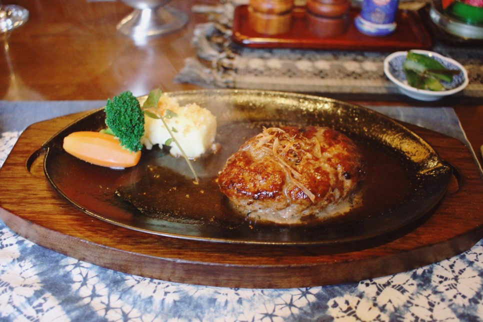 * 햄버그 런치 1080엔(세금포함)/후식커피 포함시 1250엔: 특제 와규 햄버그