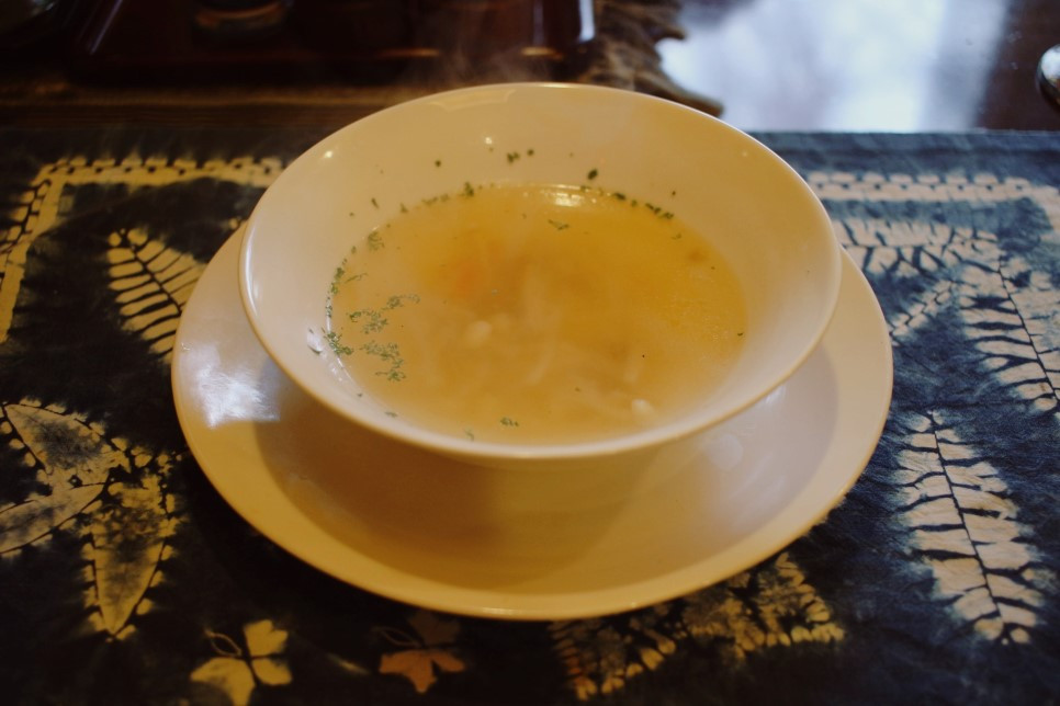 수프로는 버섯과 양파, 당근이 든 맑은 수프가 나왔다. 기본적으로 짭짤한 맛이 상당해 따로 간을 하지 않았다.