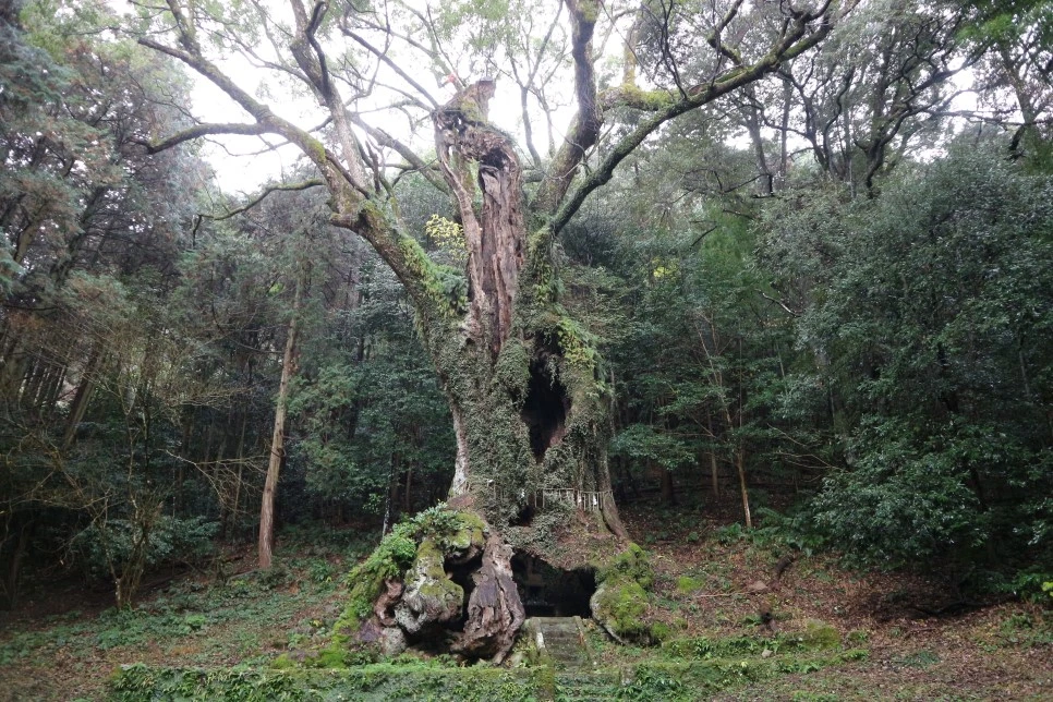 신사 입구에서 올라가면, 신사 왼편에 녹나무로 가는 길이 있다. 녹나무에도 신을 모시고 있어, 도리이(鳥居)가 서있다.