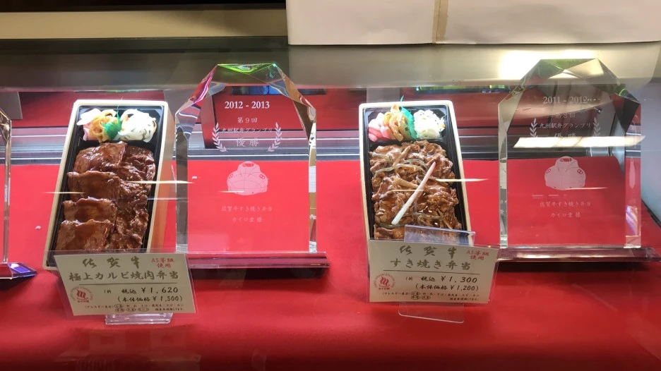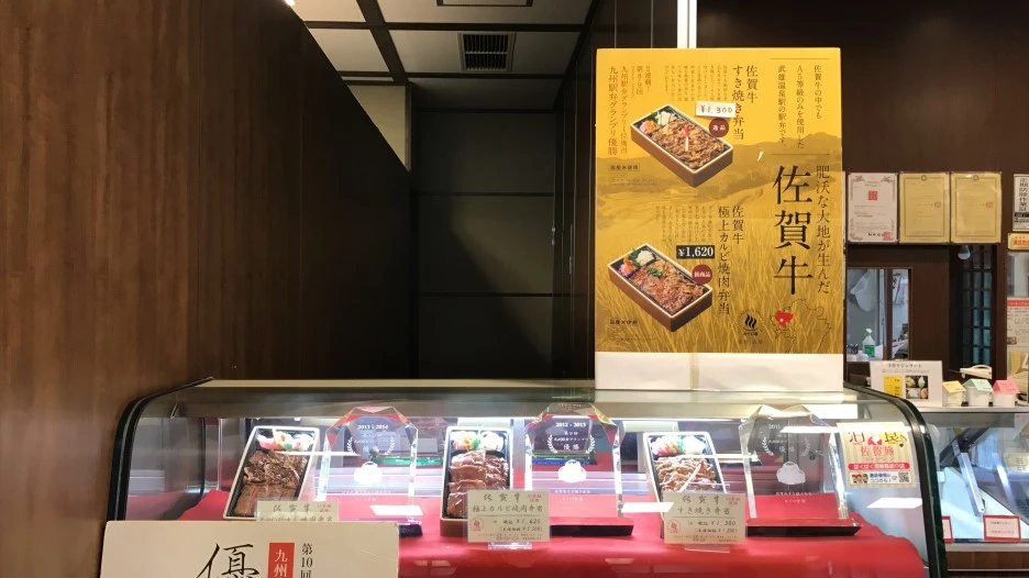카운터에는 에키벤 대회에서 수상한 벤또들이 모형으로 전시되어 있다. 모든 사가규 벤또에 스키야키가 기본적으로 들어가 있다. 스키야키만 들어있는 벤또가 있고 스키야키와 함께 갈비나 서로인 스테이크가 함께 들어간 벤또가 있는 것이다.