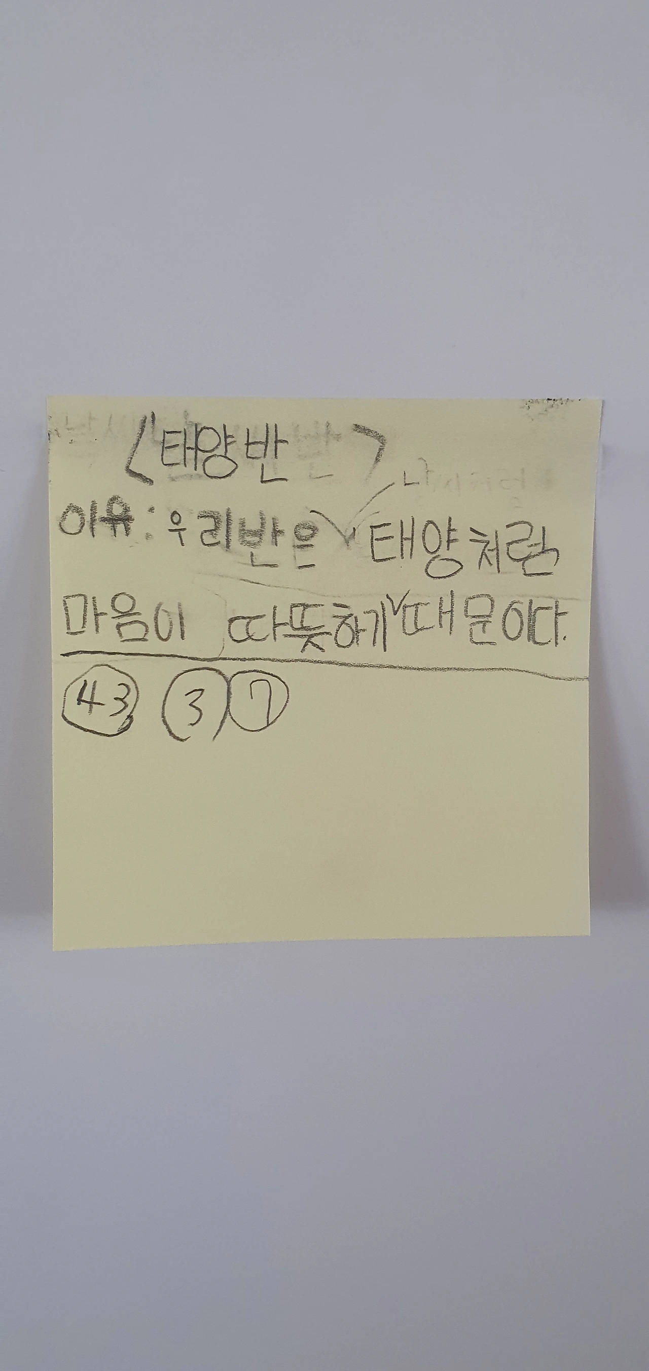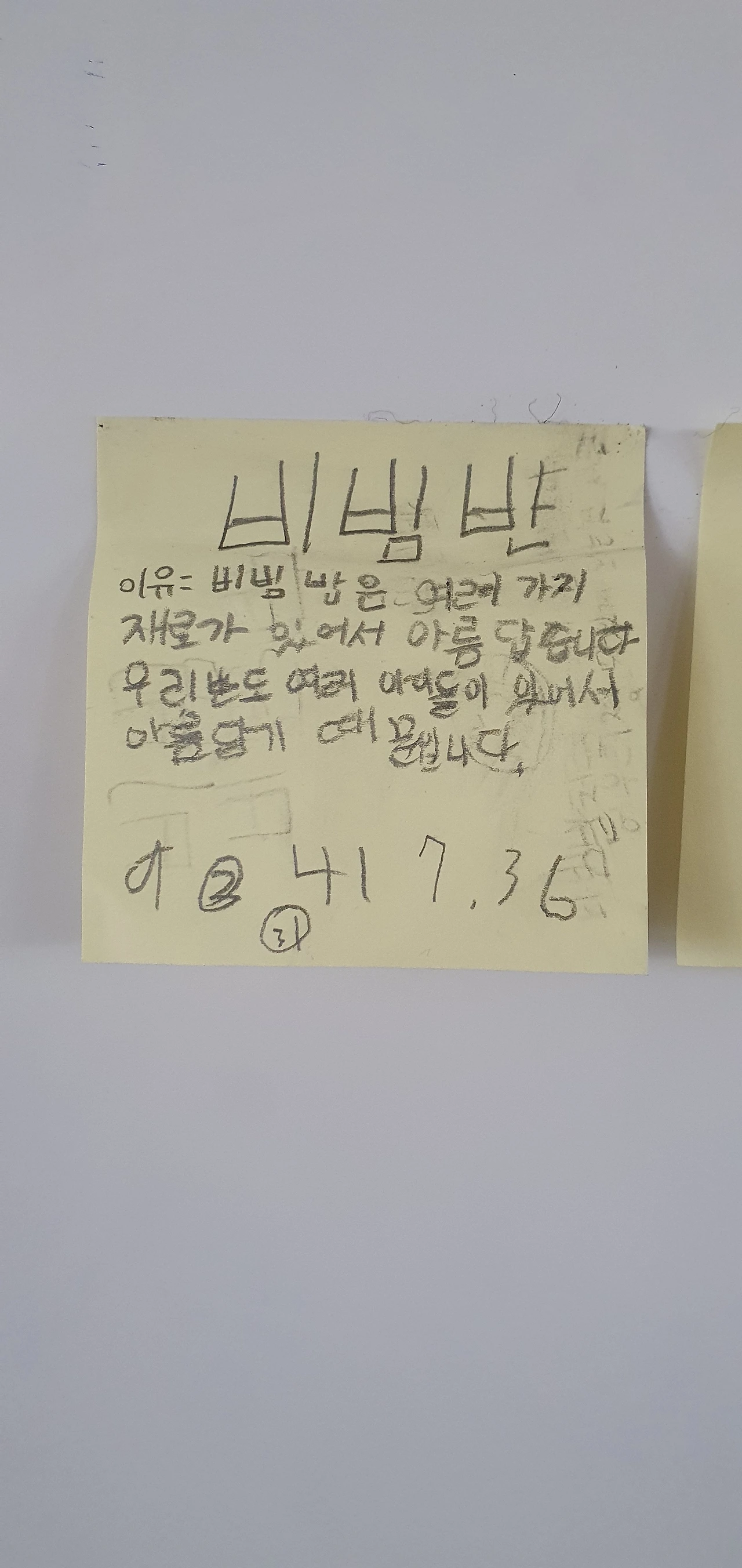 포스트잇에 이름과 이유를 적어서 칠판에 붙이면