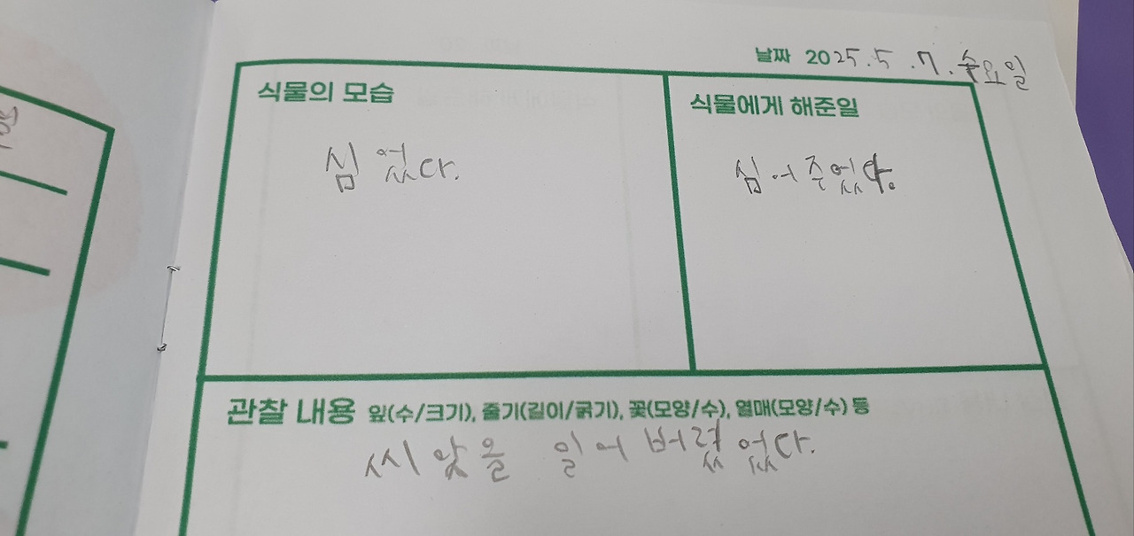 왜 방울토마토가 이겼을까? 나중에 관찰일지를 보니 '먹고싶어서'란다.