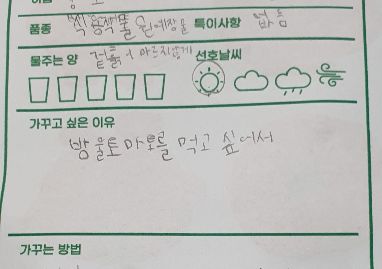 자신이 이미 방울토마토를 여러 번 길러봤다며 바질로 바꿔달라고 했다.